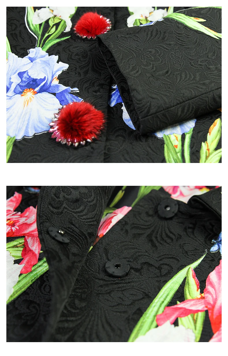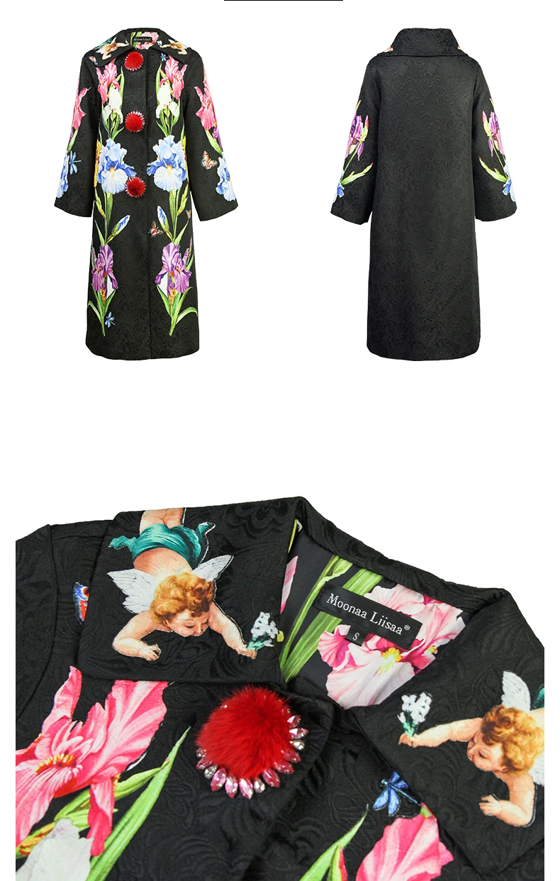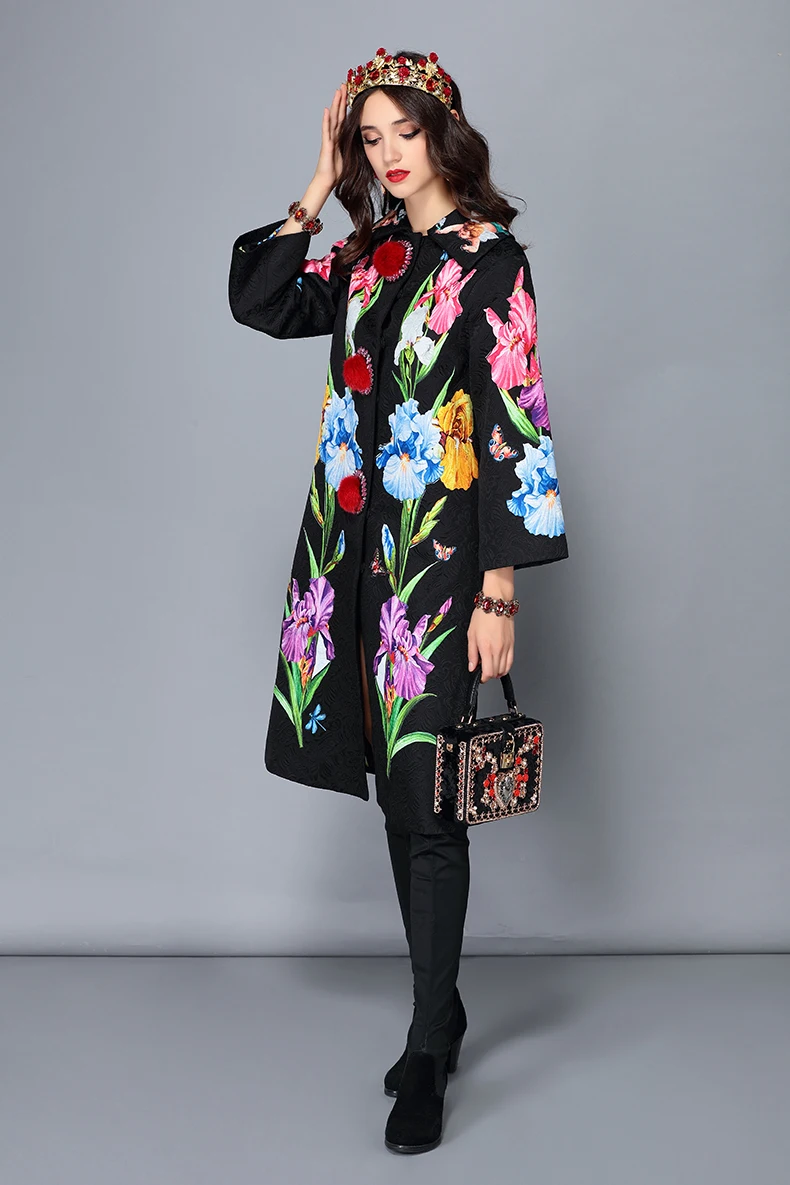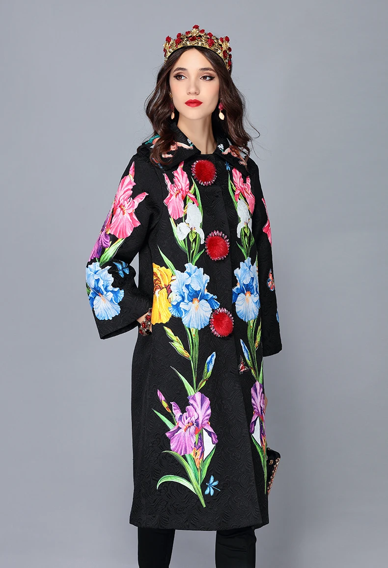 LD LINDA DELLA 2018 New Autumn Winter Coats female Women’s Flower Floral Jacquard Vintage Warm Long Coat Outerwear overcoat