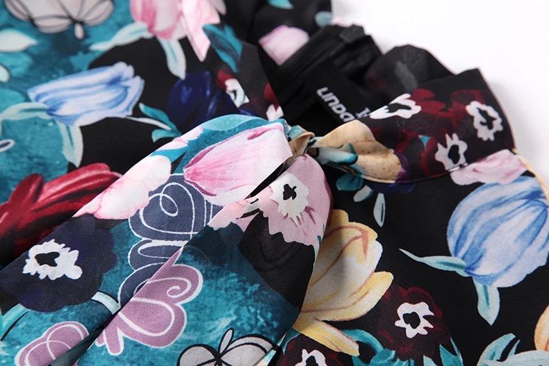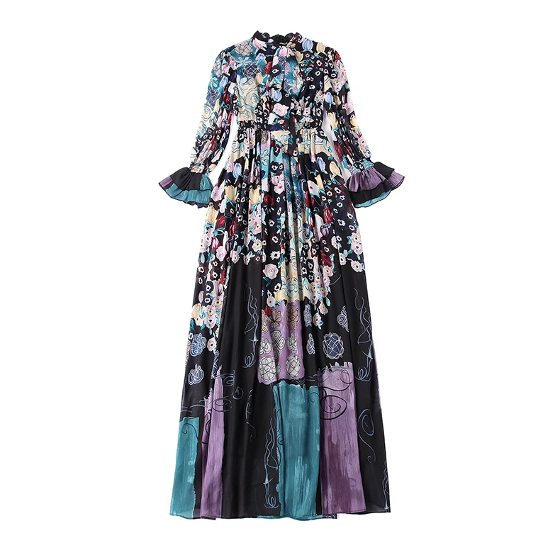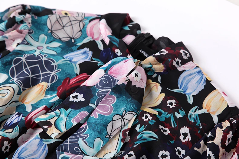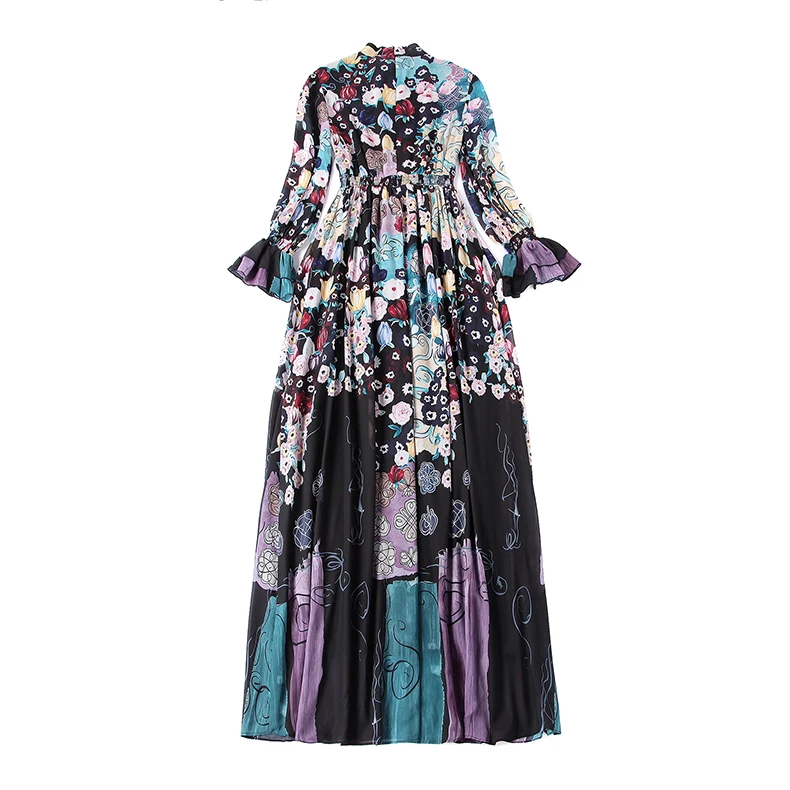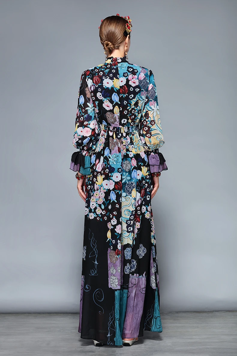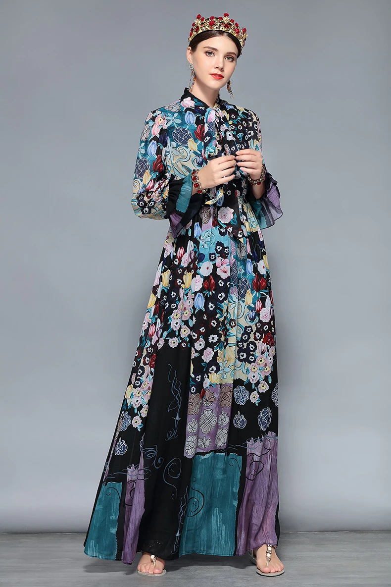 LD LINDA DELLA New Fashion Runway Maxi Dresses Women’s Long Sleeve Bow Collar Chiffon Floral Print Vintage Long Party Dresses