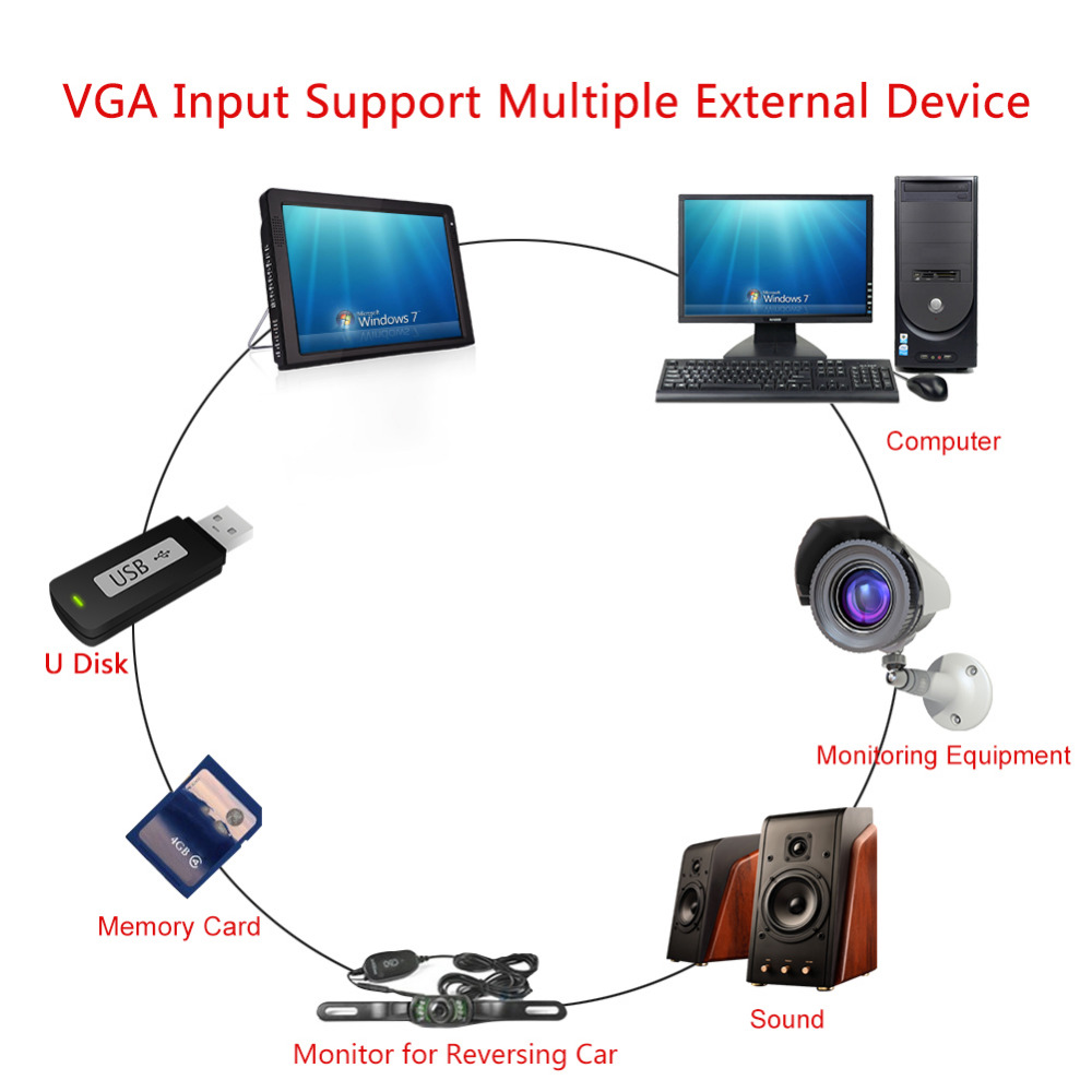 Interface: DC12v power port, AV input port, 3.5mm audio jack, USB, TF card slot, Antenna port, HDMI Input port