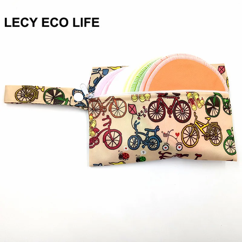 Lecy Eco Life 10pcs reusable stay dry nursing pads for new mum with 1 waterproof storage wet bag gift, soft bamboo breast pads