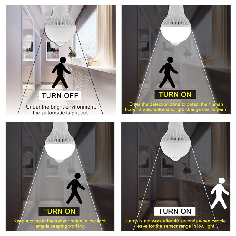 LED Bulb PIR Motion Sensor Auto Smart Lamp E27 220V 5W 7W 12W Energy Saving Ampoule Lampada Led Infrared Body Lamp Lighting Home
