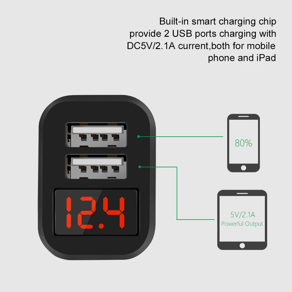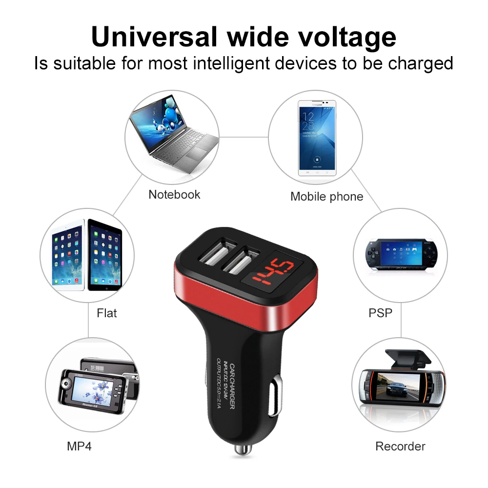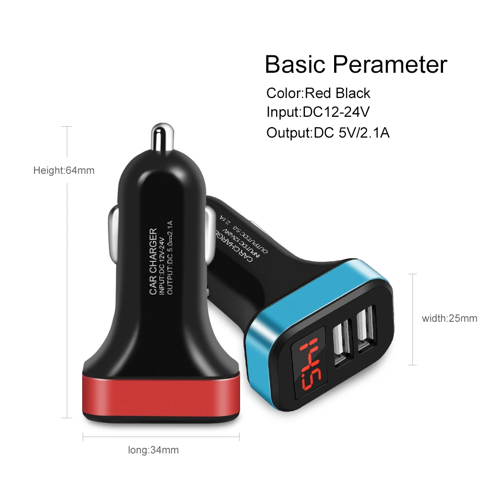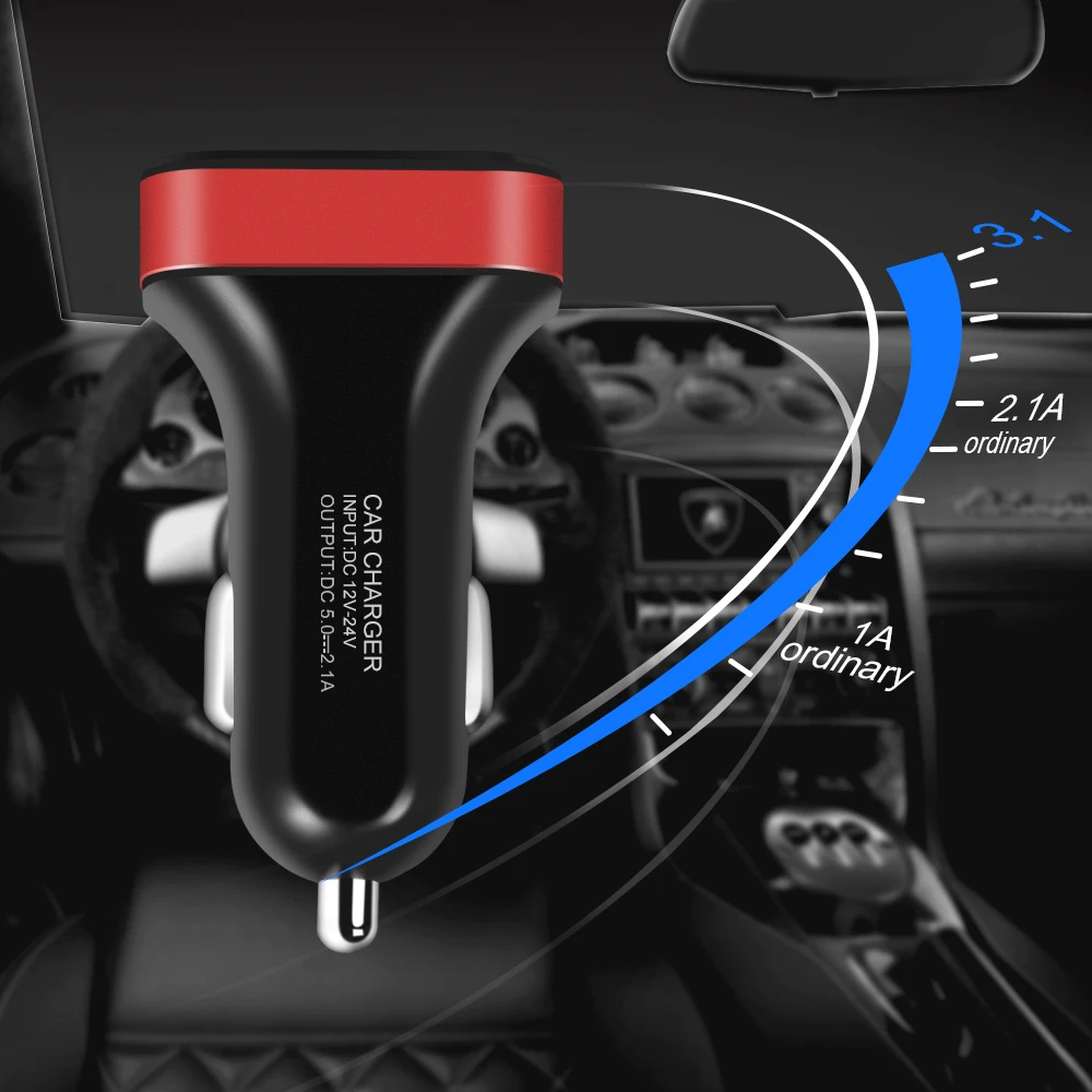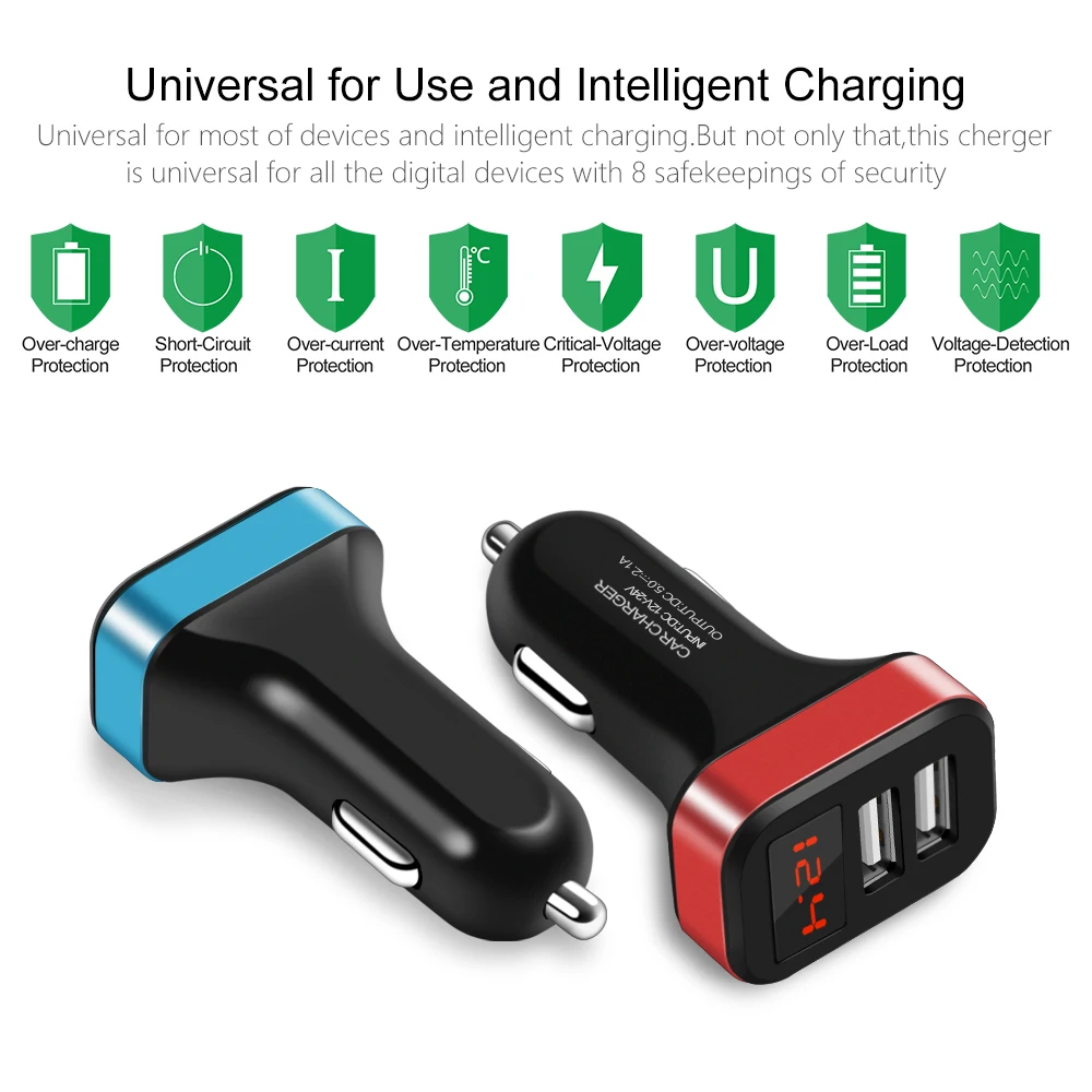 LED Car Charger fast charger USB charger for iphone X 8 7 plus Charging for Mobile phone Car charging Adapter for Samsung S8 S9