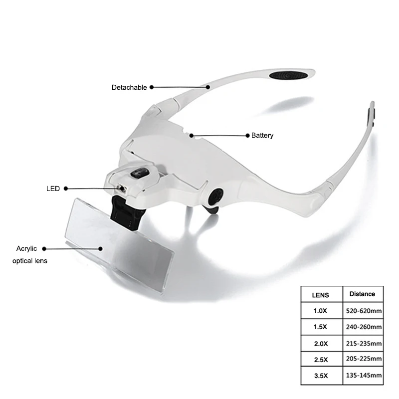 LED Head Light Magnifier microblading headlight with a magnifying glass tattoo supplies 5Pcs Lens Interchangeable Magnifiers