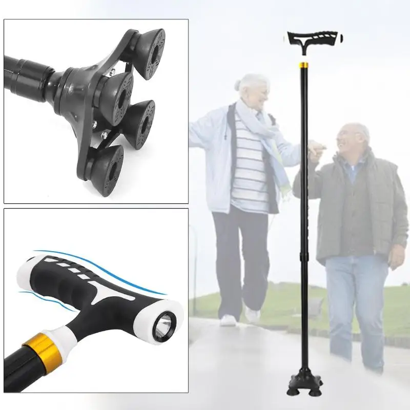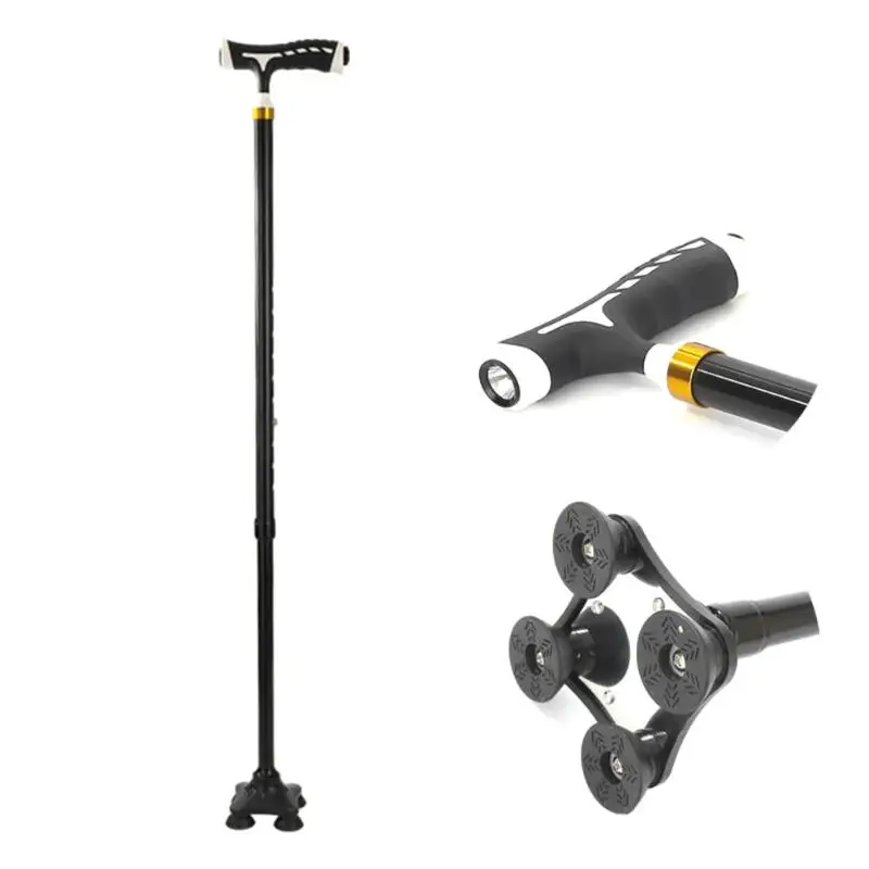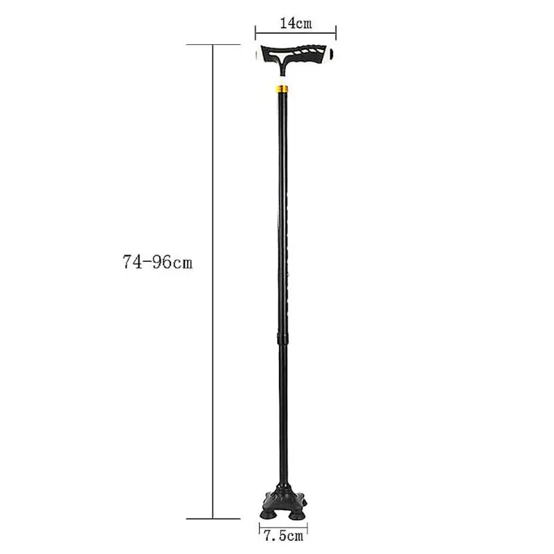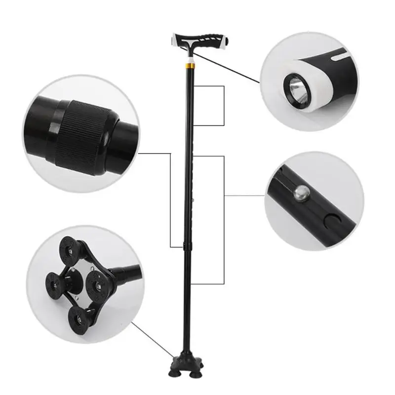 Feature: 1. Can be stable and upright. 2. The rotatable contact head specially creates 4pcs supporting points to firmly erect. 3. Flashlight with LED lights is a good helping tool for the elderly. 4. The customized weight is practical and lightweight. 5. It’s a good helper for mountaineering, traveling and helping. 6. 10 modes adjustment, easy to fold, easy to carry. 7. Reinforcement, locking device, tighter connection, small four feet design, better skid resistance. Specification: Note: