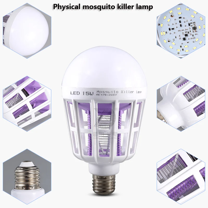 LED Mosquito Killer Lamp E27 AC 220V 15W LED Bug Zapper Trap Light Electric Insect Anti Mosquito Repeller Killing Fly Bug Lamps