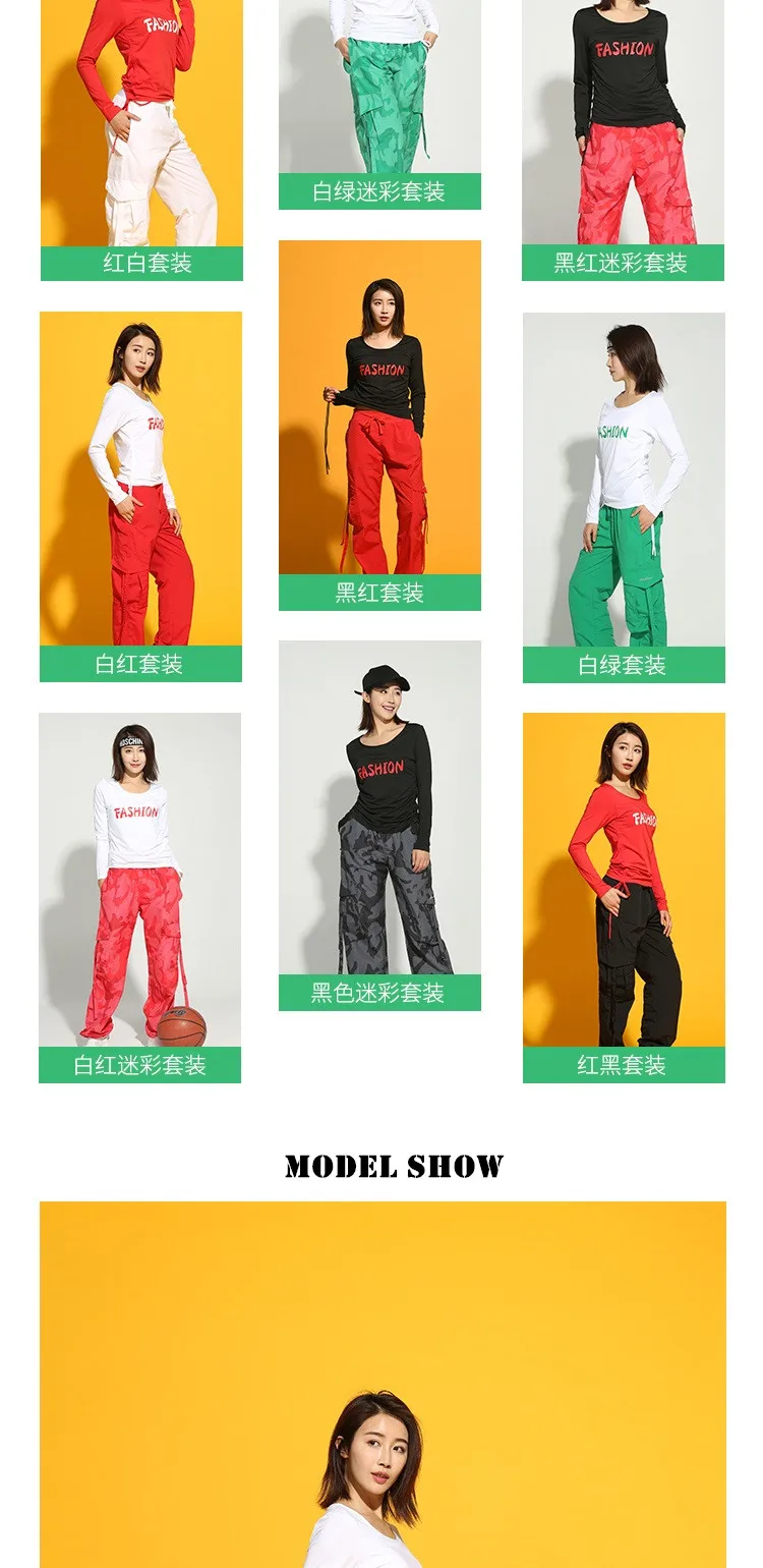 Long-sleeve Fitness Sets Female Hip-hop Dancing Sets S-XXL