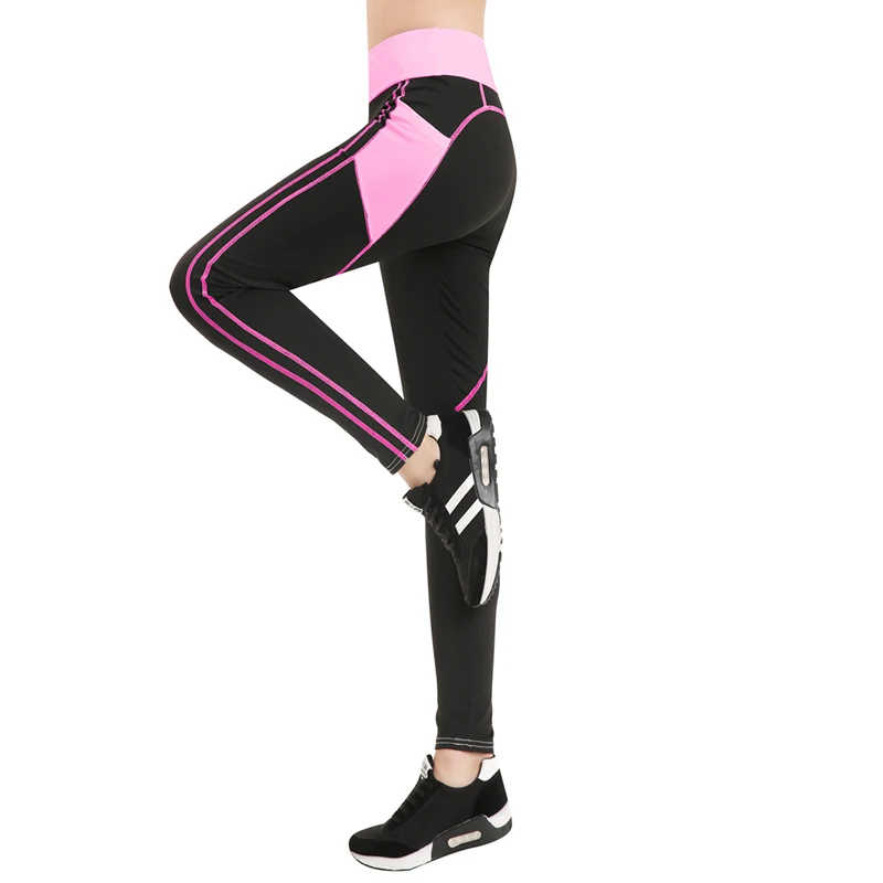 Leggins Sport Women Fitness Sexy Women Yoga Pants Fitness Tights with Side Mesh Pocket Contrast Color Yoga Running Trousers QL