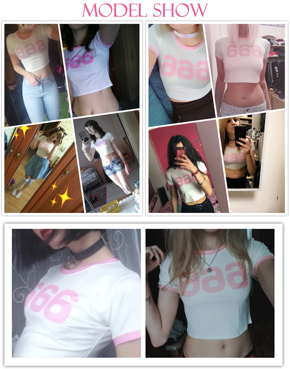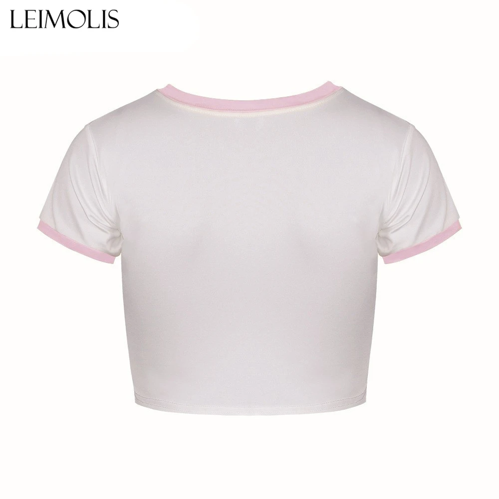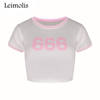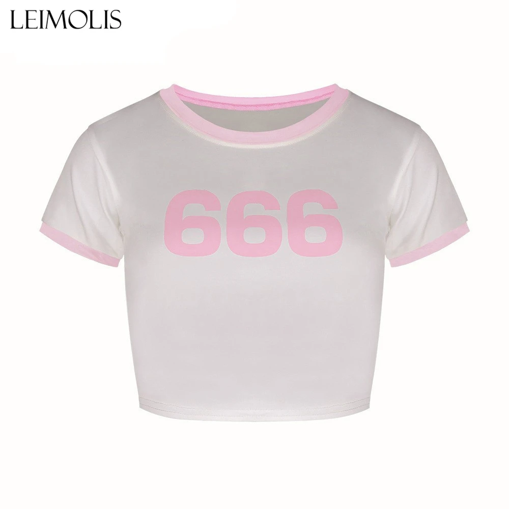 LEIMOLIS 2018 summer 3d print 666 pink Letter japan harajuku kawaii punk sexy tight crop top girl punk rock short t shirt women