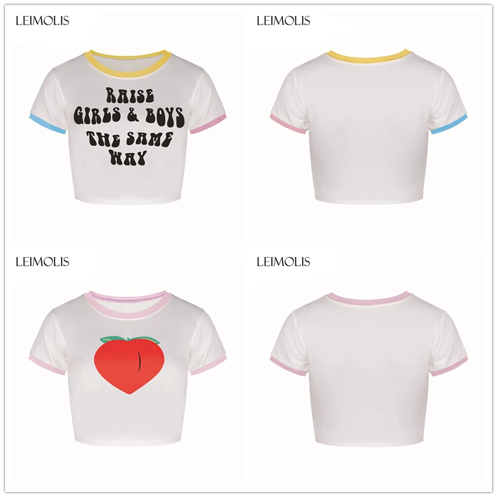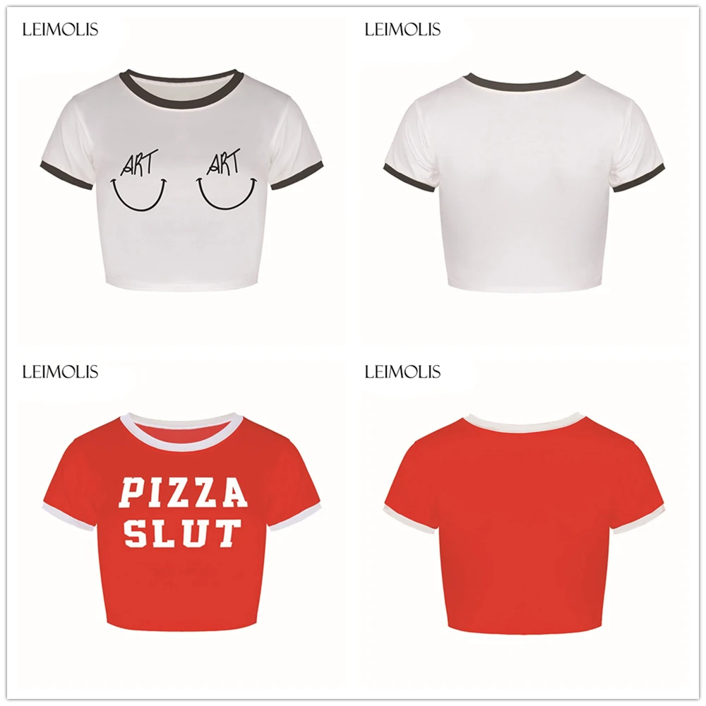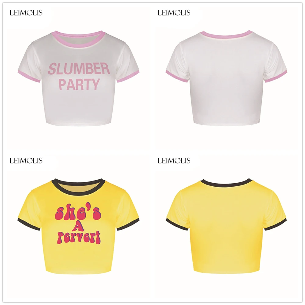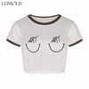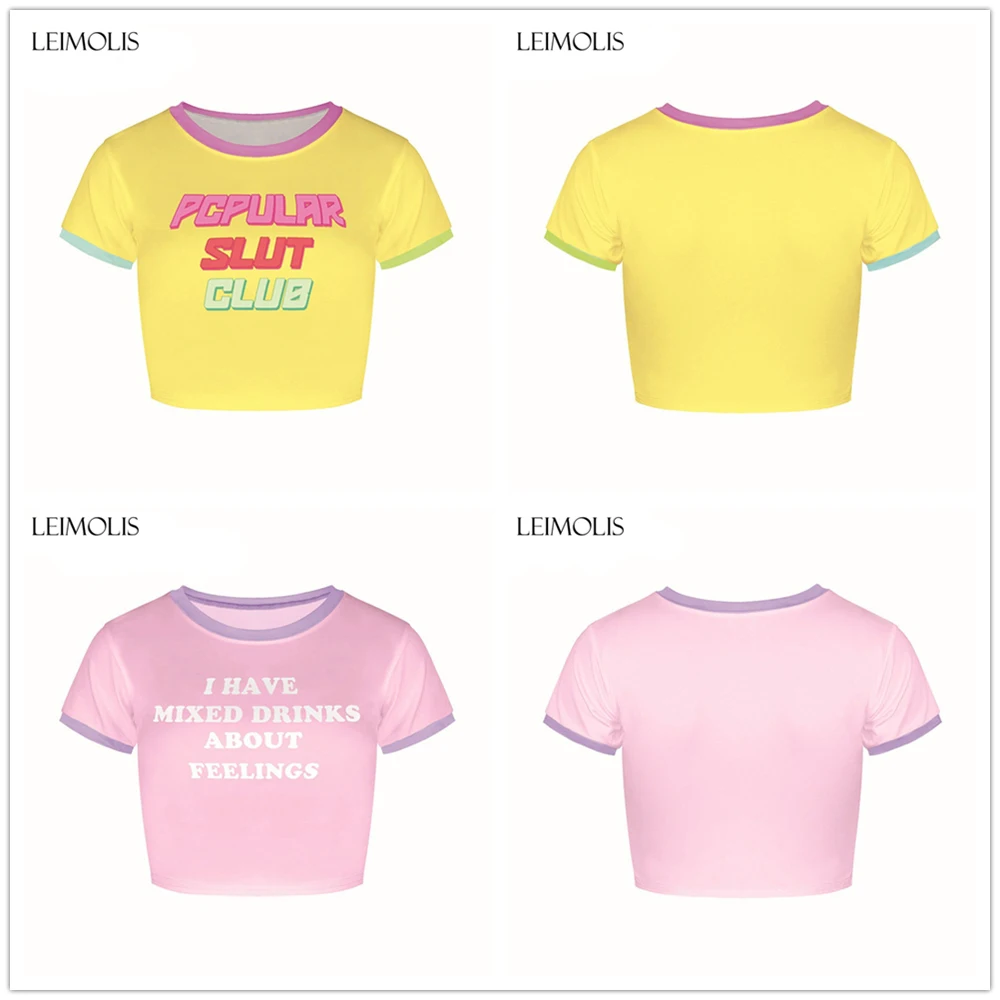 LEIMOLIS 2018 summer 3d print 666 pink Letter japan harajuku kawaii punk sexy tight crop top girl punk rock short t shirt women