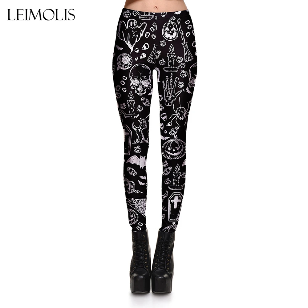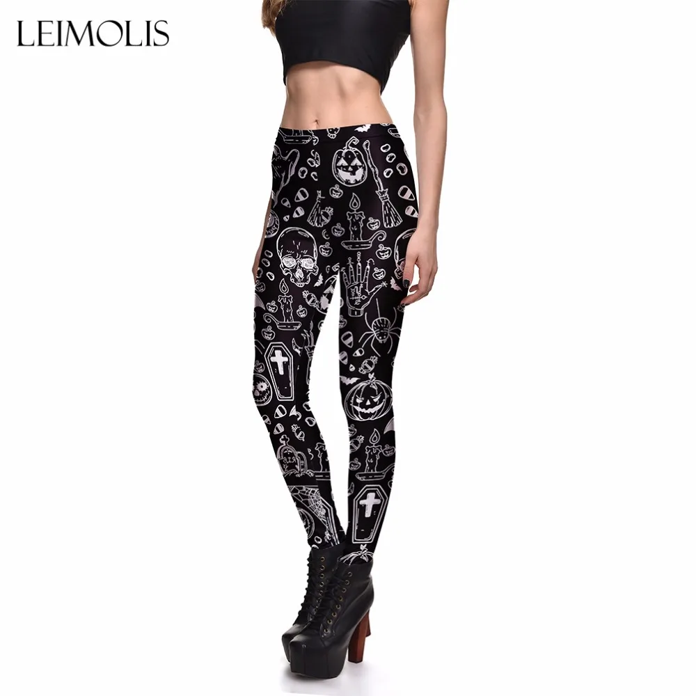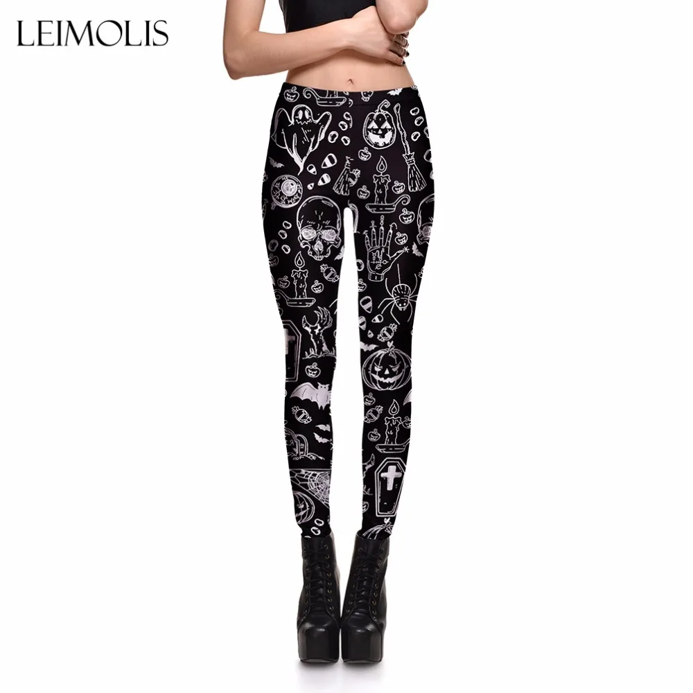 Leimolis 3D printed black skull Ghost Bat harajuku gothic sexy plus size high waist push up fitness workout leggings women pants