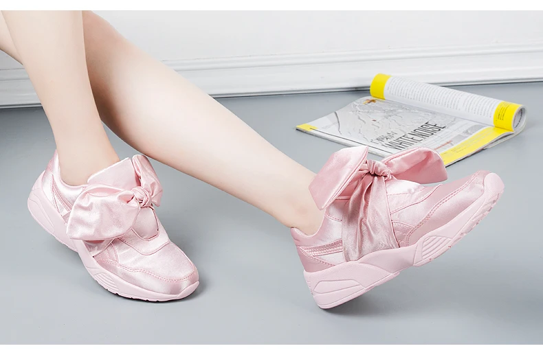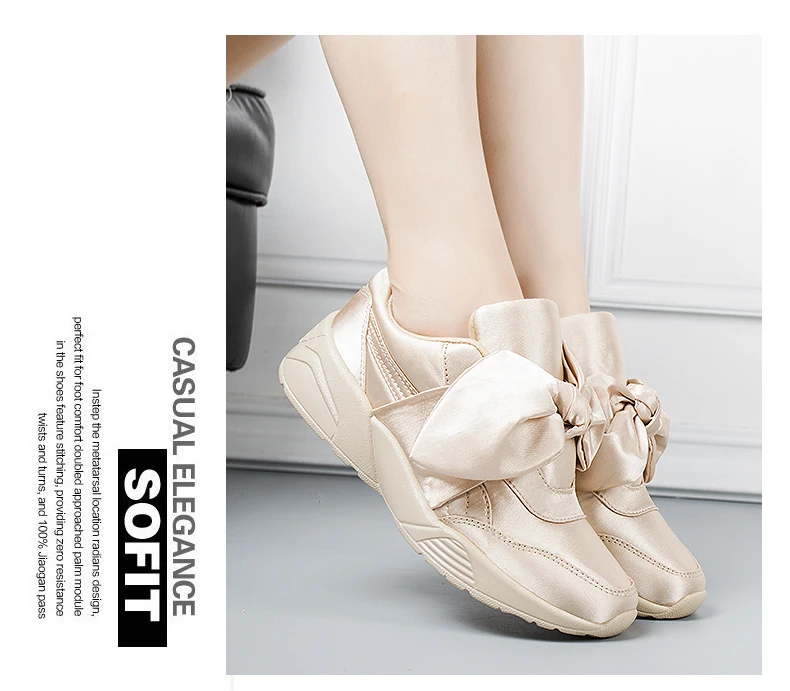 Leixiang Women Walking Shoes Bow Tie Flats For Girls Sneakers Sweet Chaussures Femme Round Toe Shoe Light Sport Shoes Sapatilhas