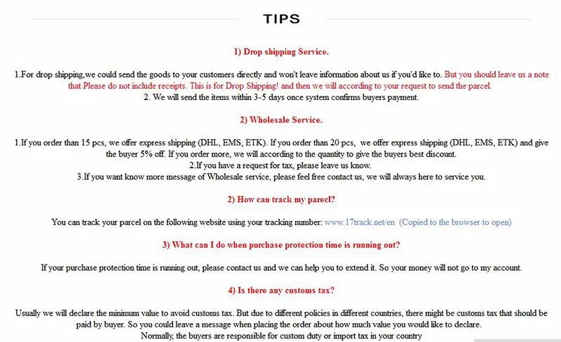 • If you did not receive the product within the guaranteed time( 45 days not including 2-5 day processing) you can request a refund or a reshipment.