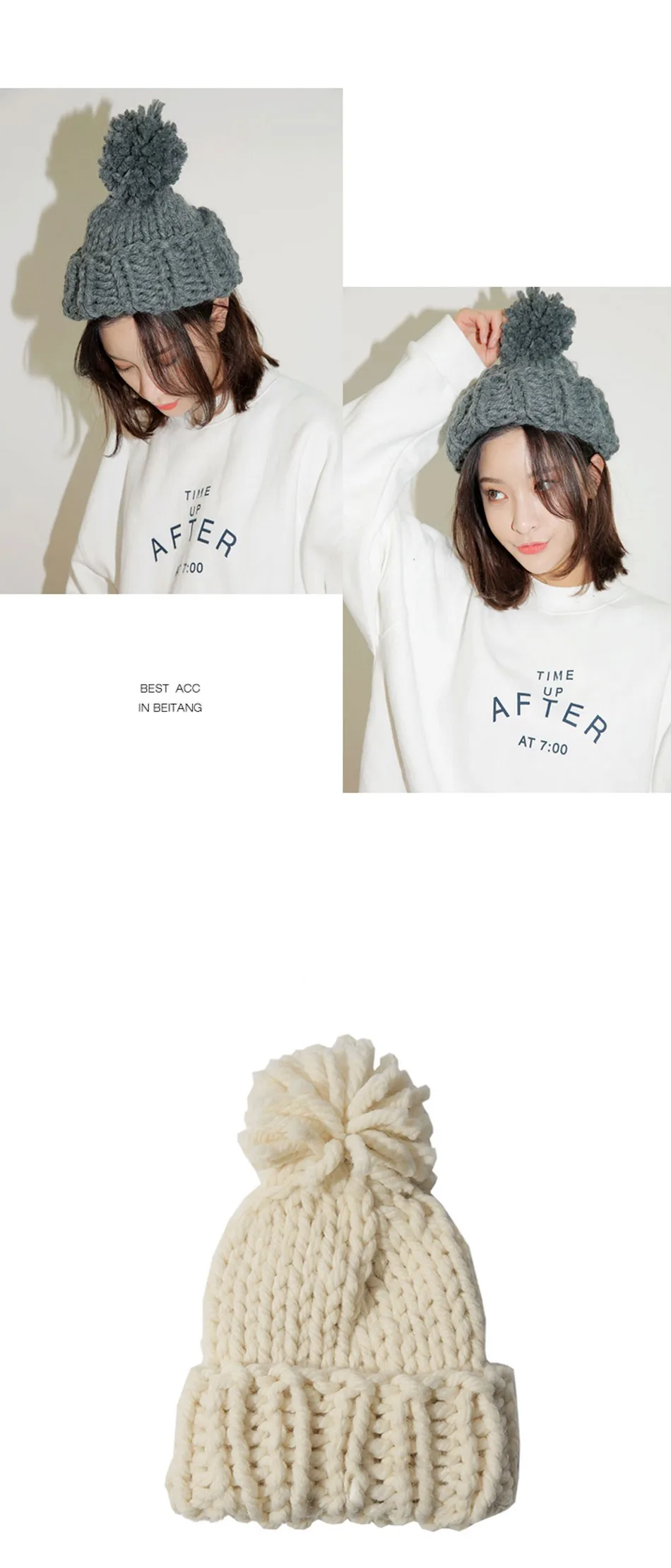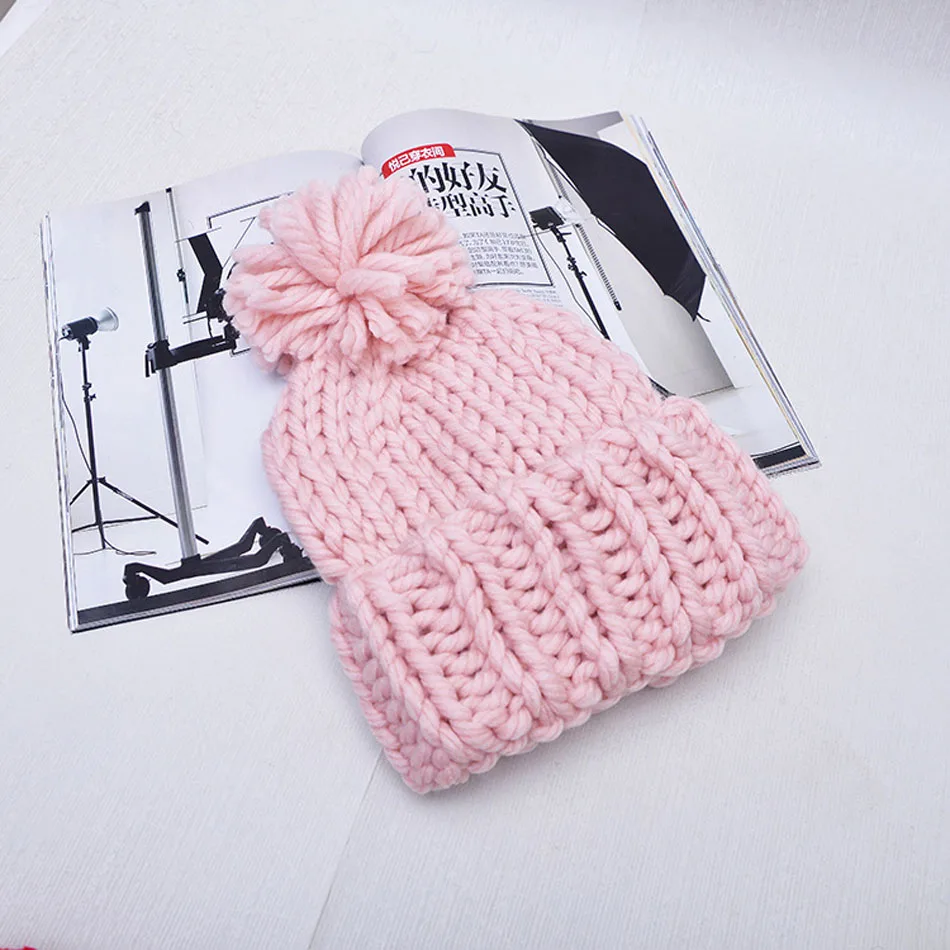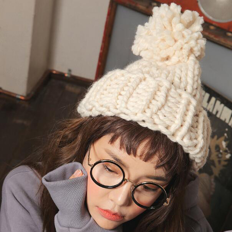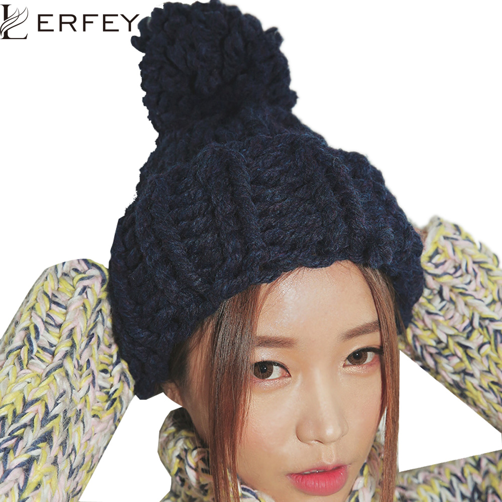 LERFEY Knitted Hats Handmade Coarse Winter Hat For Women Hat Fashion Warm Skullies Beanies Female Pom pom Cap New Gilrs Caps