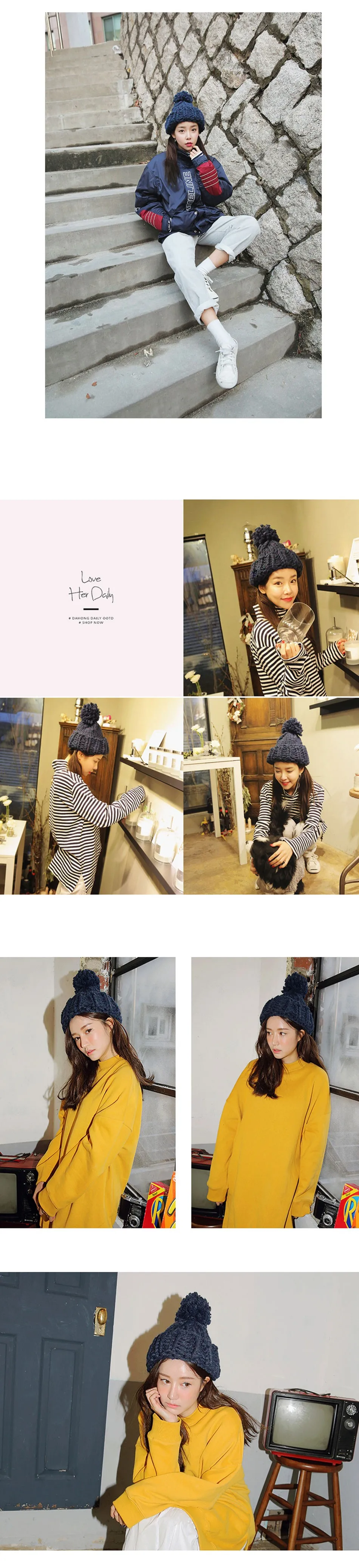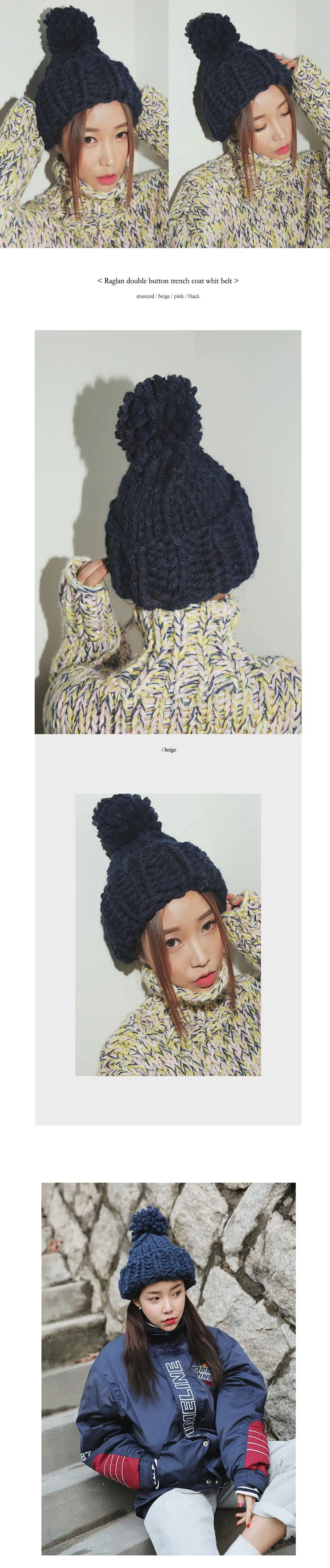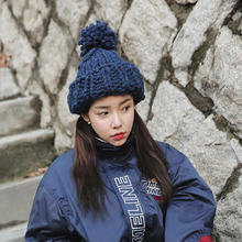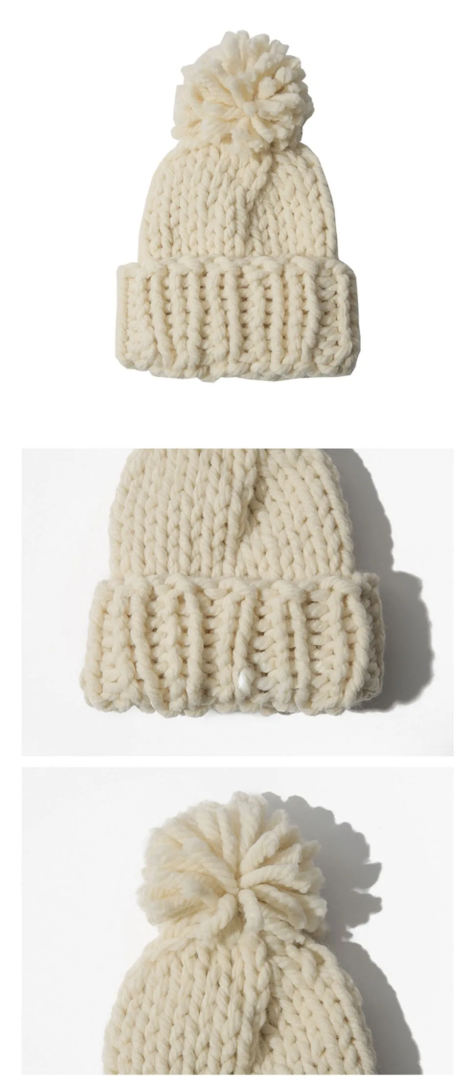 LERFEY Knitted Hats Handmade Coarse Winter Hat For Women Hat Fashion Warm Skullies Beanies Female Pom pom Cap New Gilrs Caps