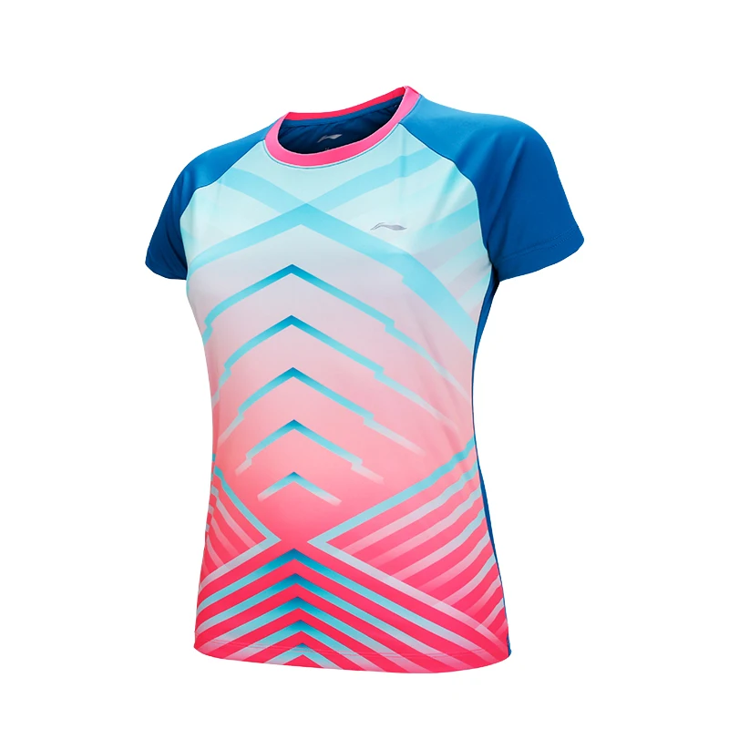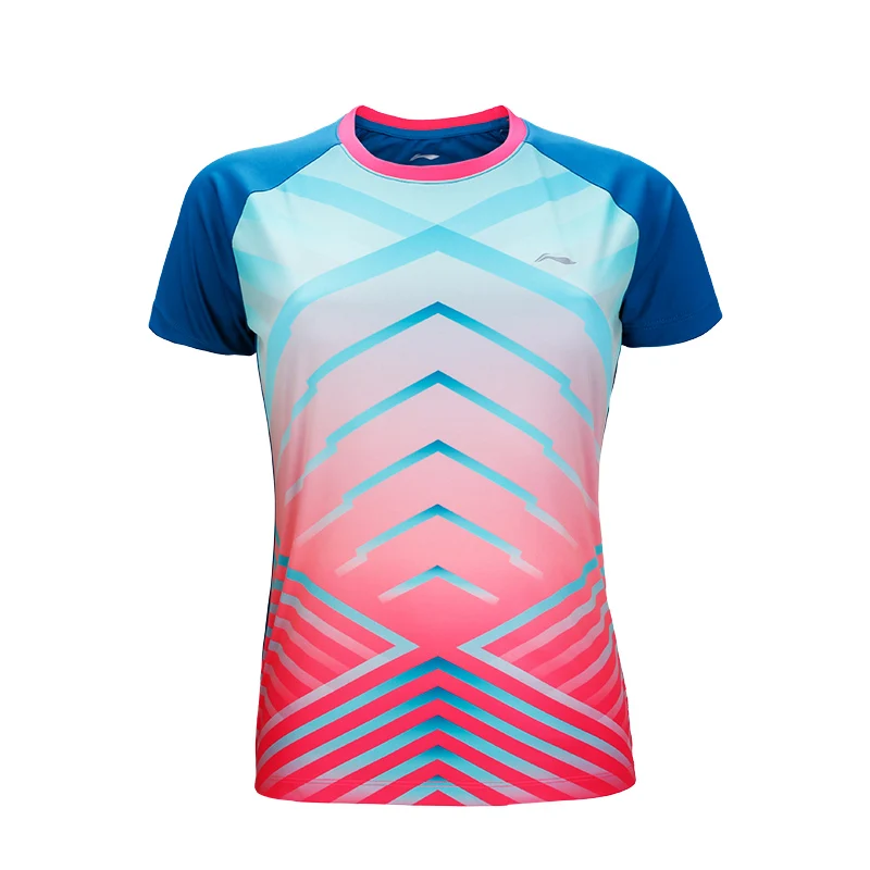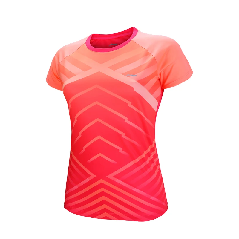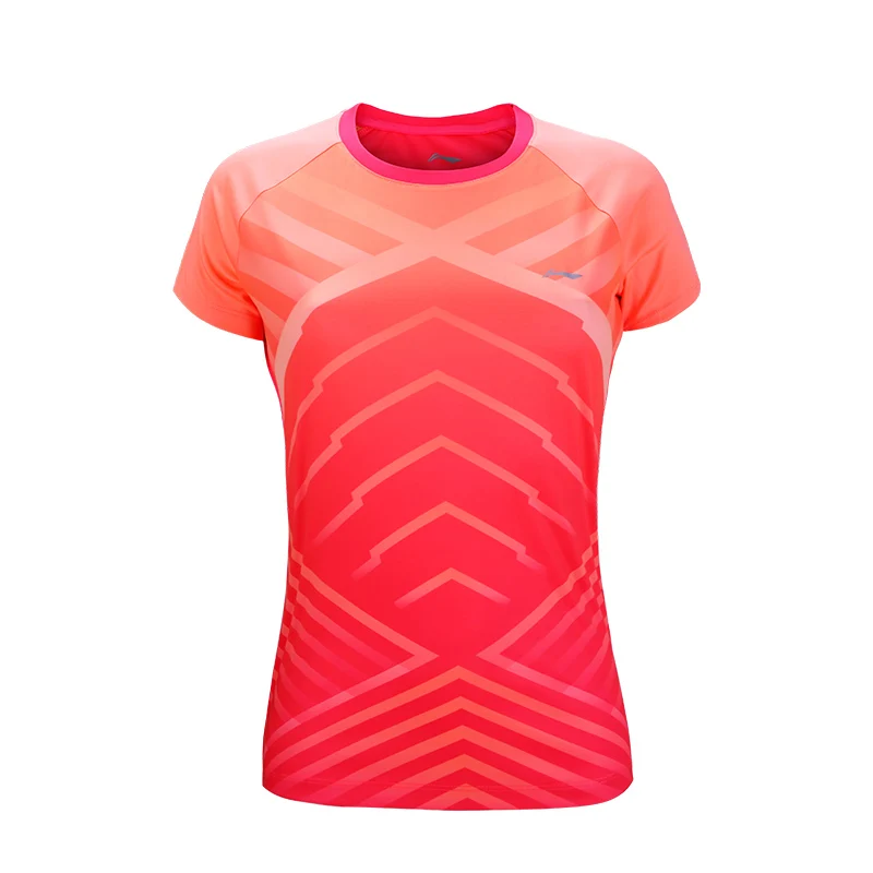 Li-Ning 2018 Women Fitness Badminton T-Shirts Breathable Light Tee Competition Top Comfort Li Ning Sports T-Shirt AAYN014