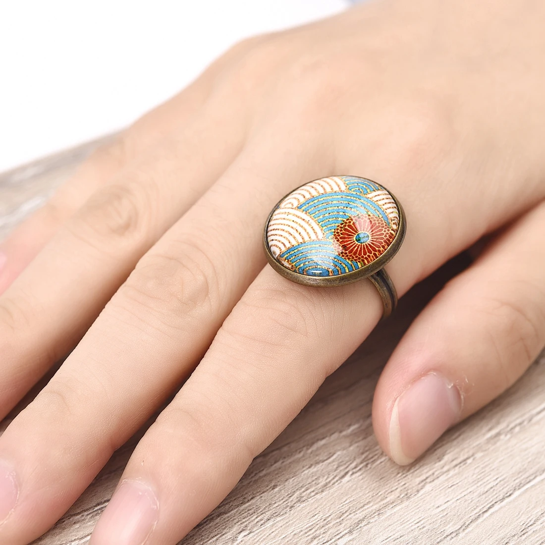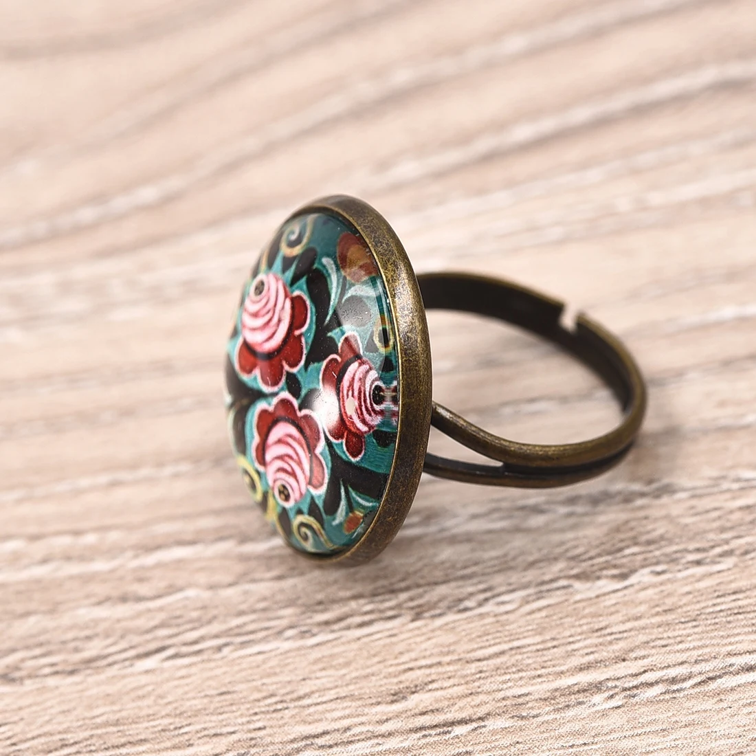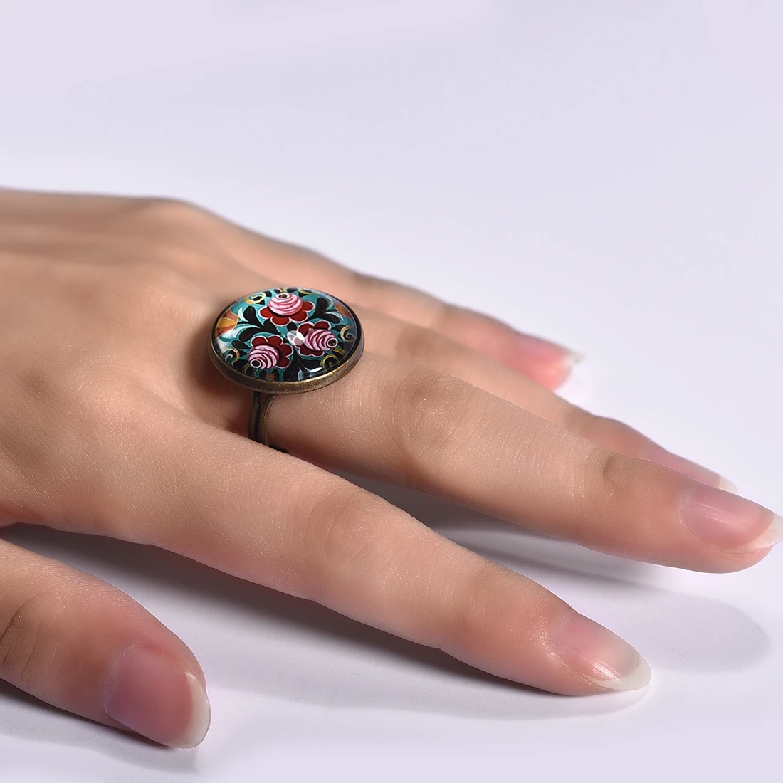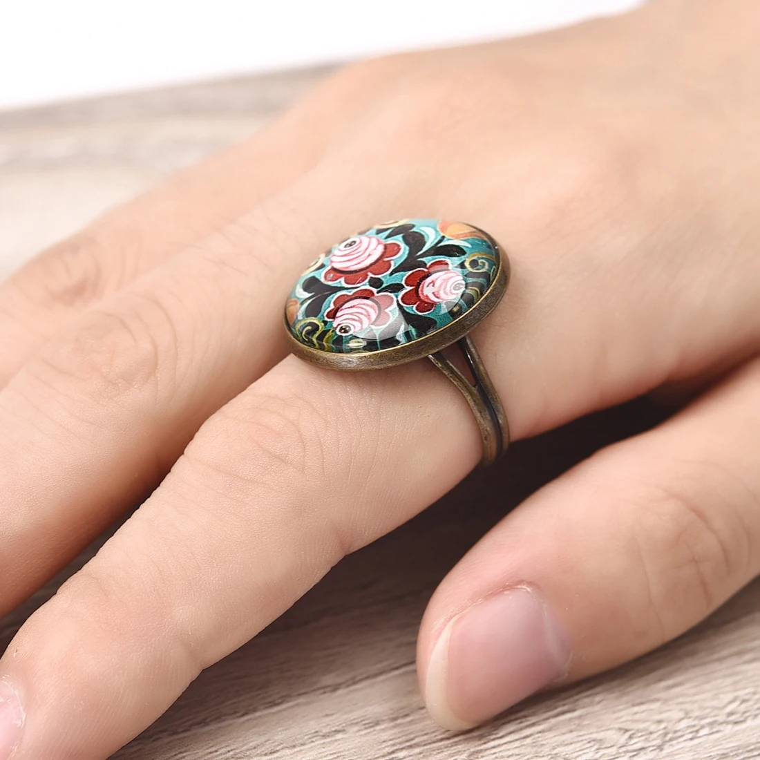 LIEBE ENGEL Vintage French Style Rings Romantic Flowers Oil Print Decoration Ring For Women DIY Jewelry Rings For Party