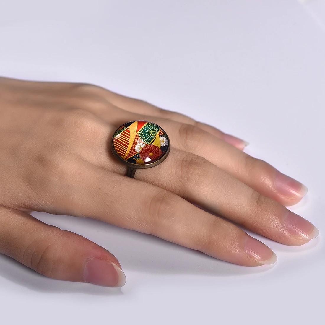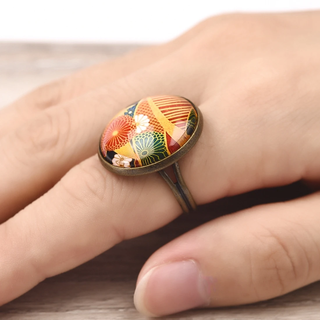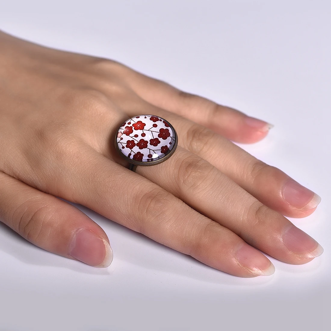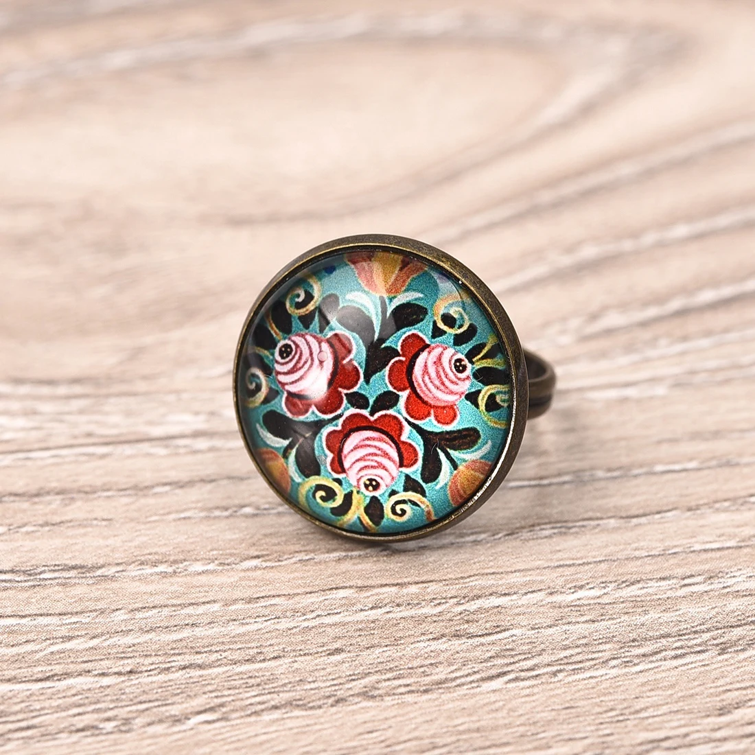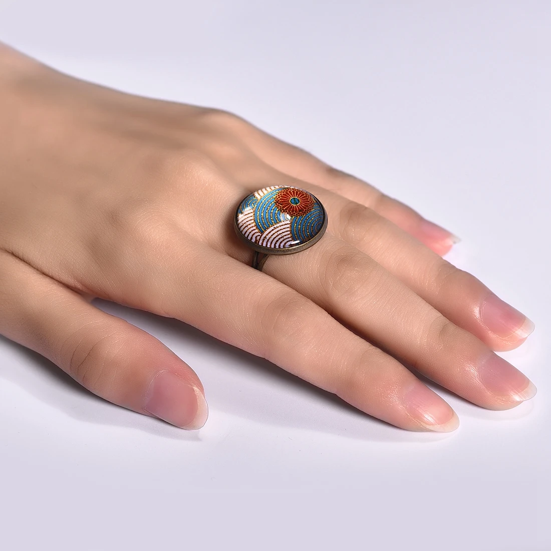 LIEBE ENGEL Vintage French Style Rings Romantic Flowers Oil Print Decoration Ring For Women DIY Jewelry Rings For Party