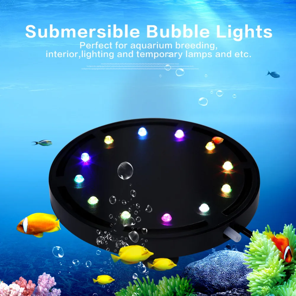 Aquarium Led Lighting 12 LED Light Submersible For Aquarium Fish Tank Air Stone Bubble Pump Decor Led Aquarium EU US Plug