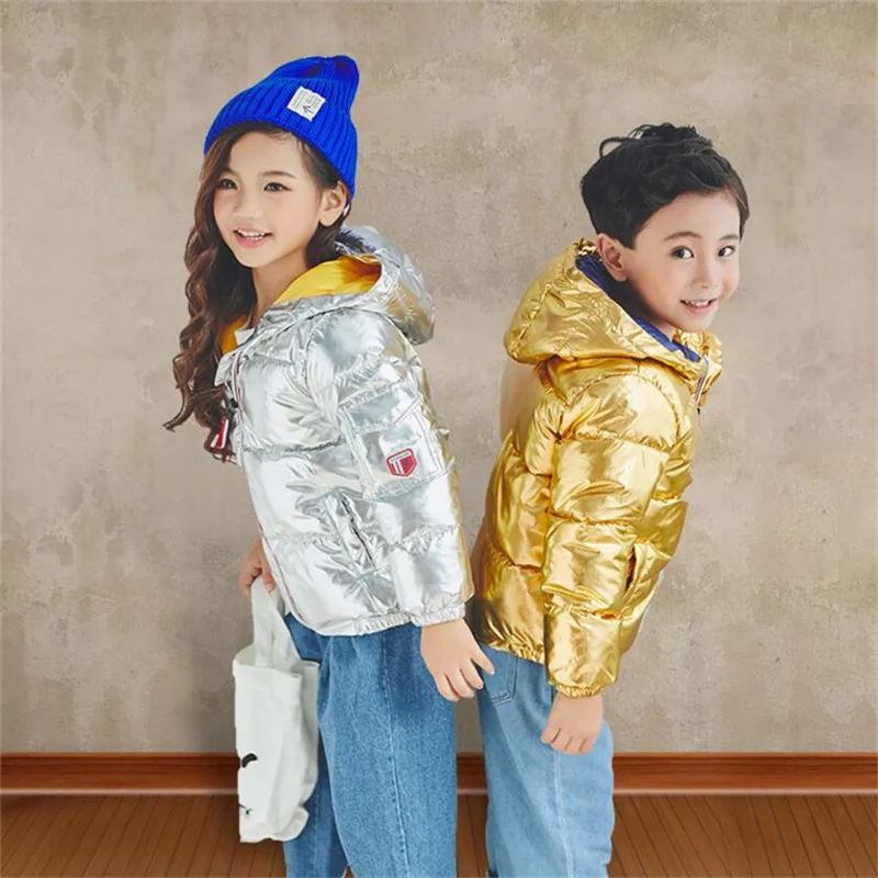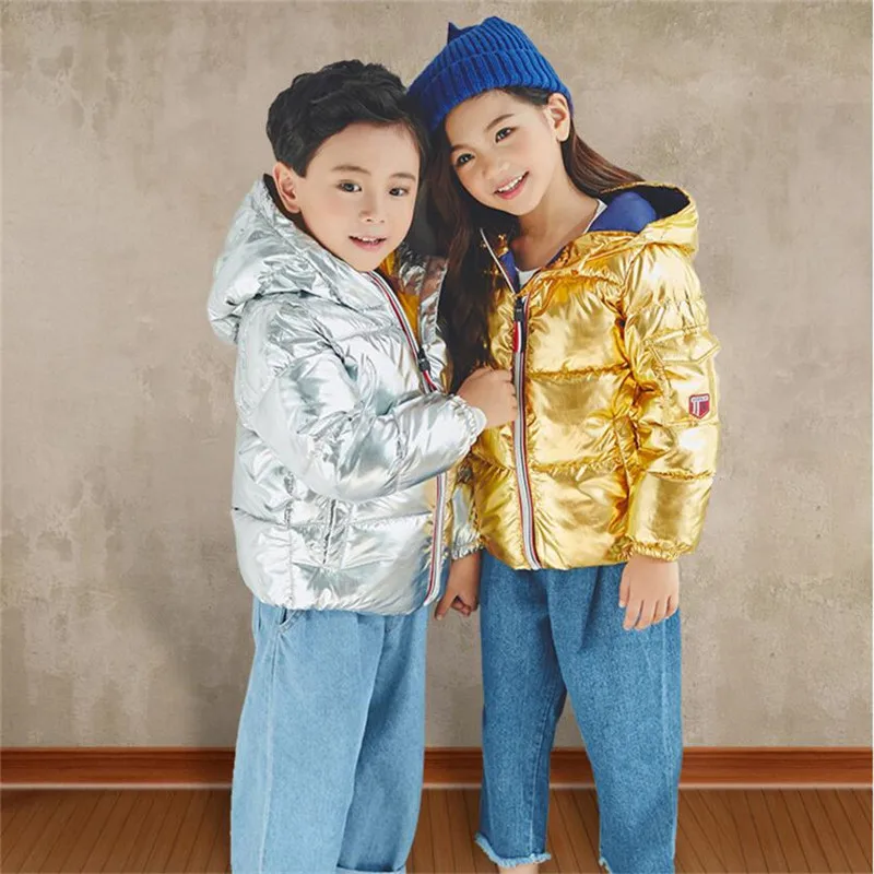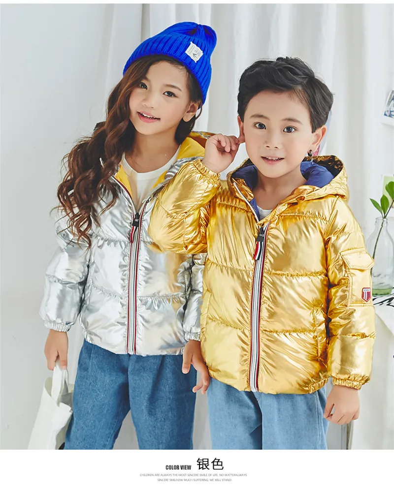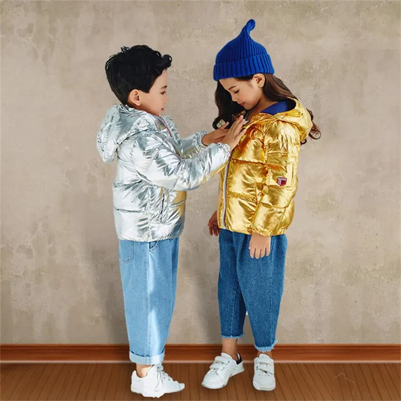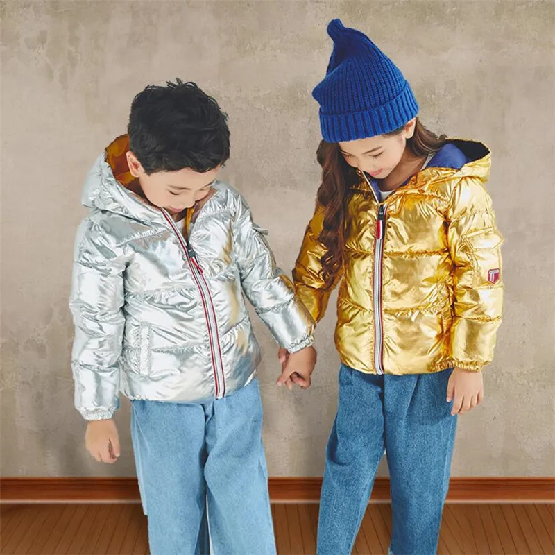 LILIGIRL 2018 New Winter Gold Baby Down-Cotton Hooded Jacket Coat for Girls Boys Silver Shining Warm Thick Tops Clothes Outwear