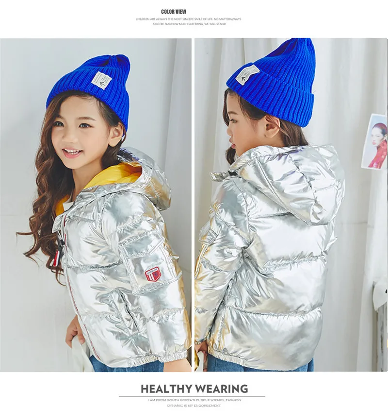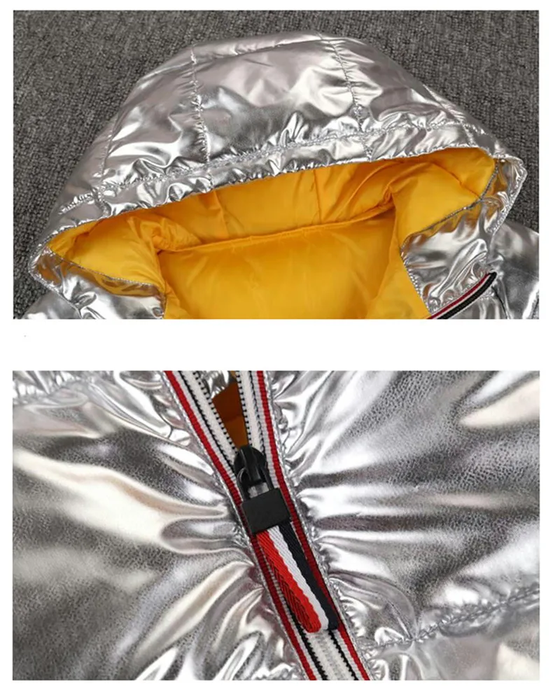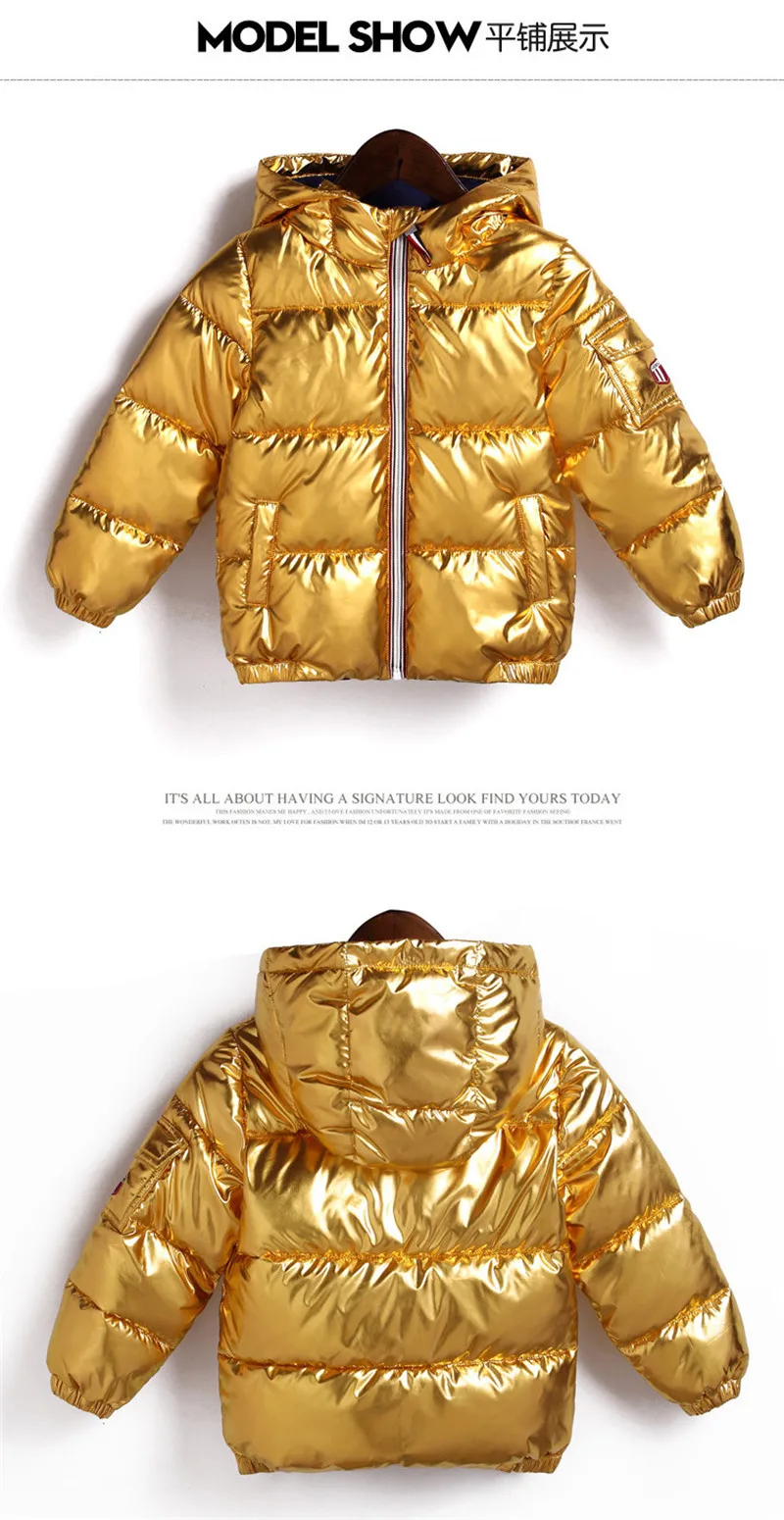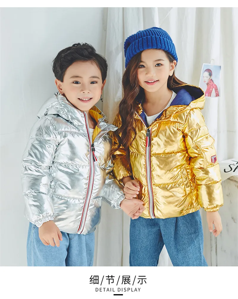 LILIGIRL 2018 New Winter Gold Baby Down-Cotton Hooded Jacket Coat for Girls Boys Silver Shining Warm Thick Tops Clothes Outwear