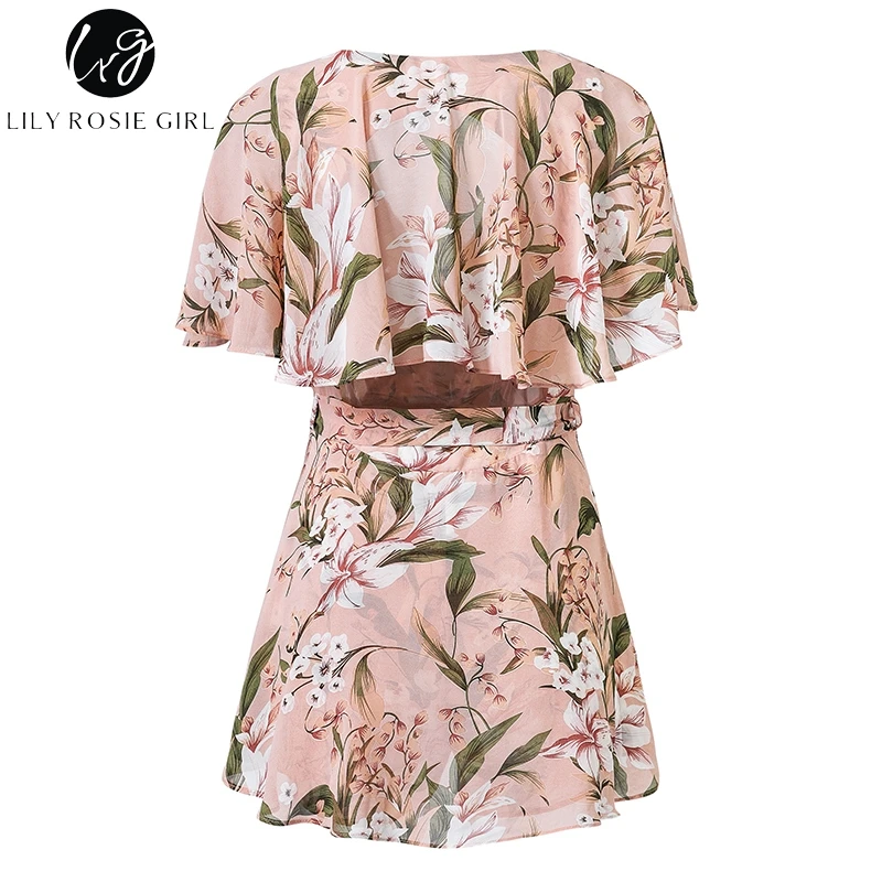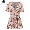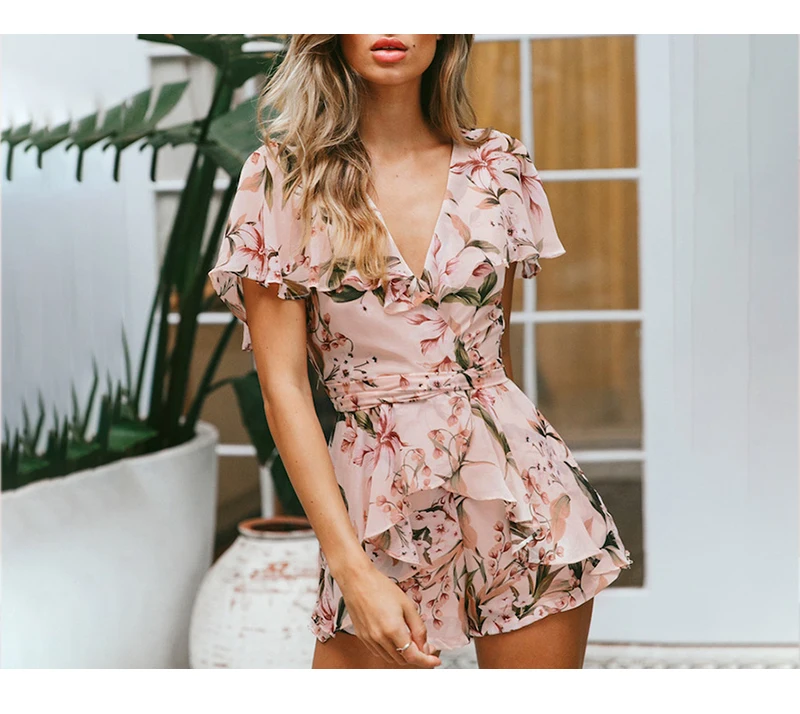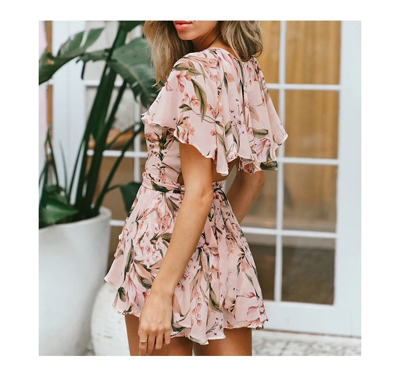 Lily Rosie Girl Women V Neck Beach Playsuit Bow Print Floral Sexy Boho Playsuit Short Jumpsuit Rompers