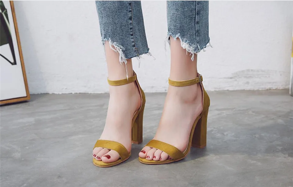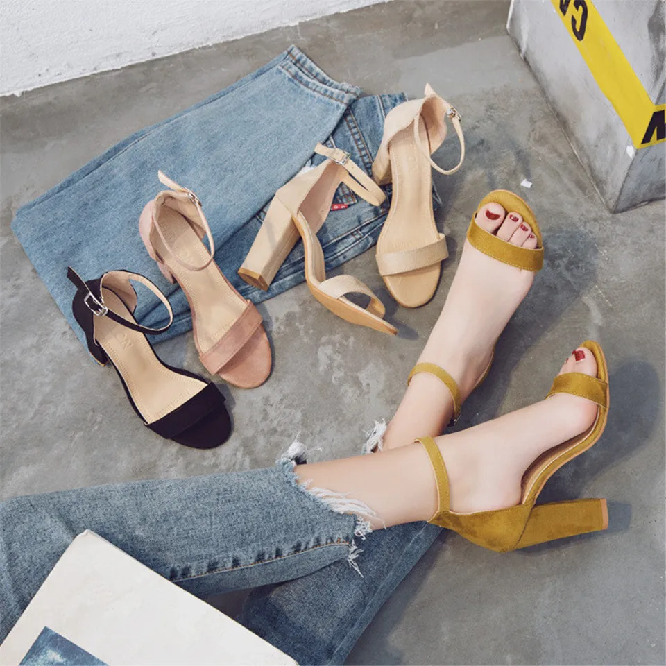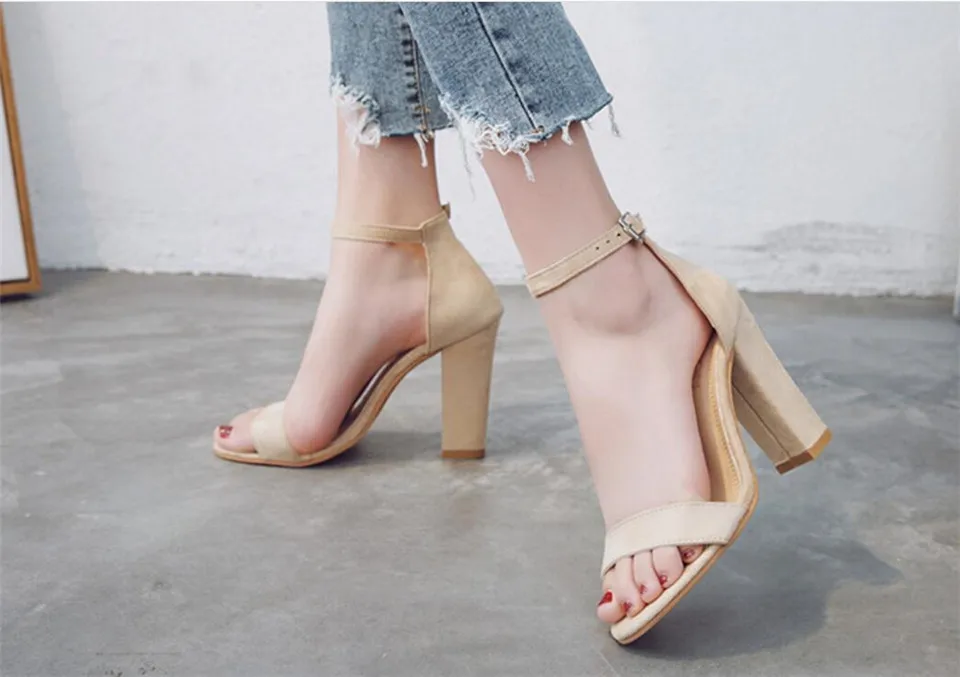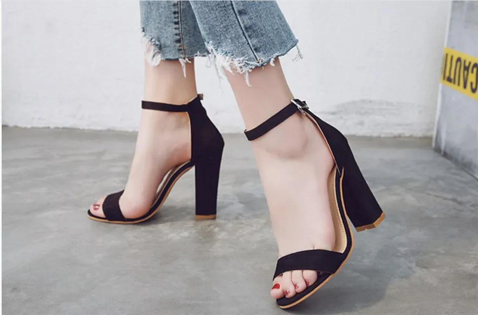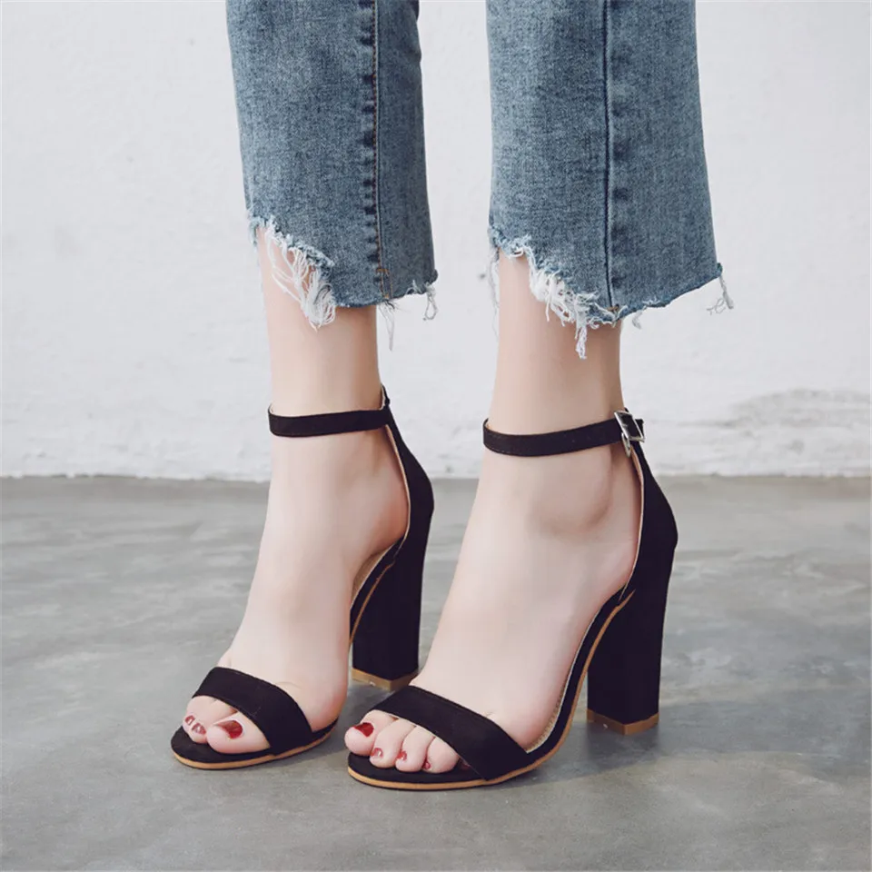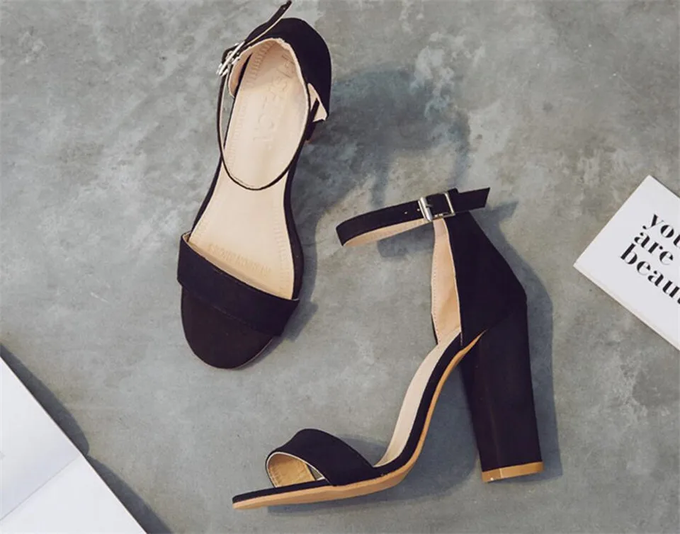 LIN KING Fashion Ankle Strap Women Casual Sandals Open Toe Summer High Heel Shoes Buckle Ladies Office Work Sandalias Shoes