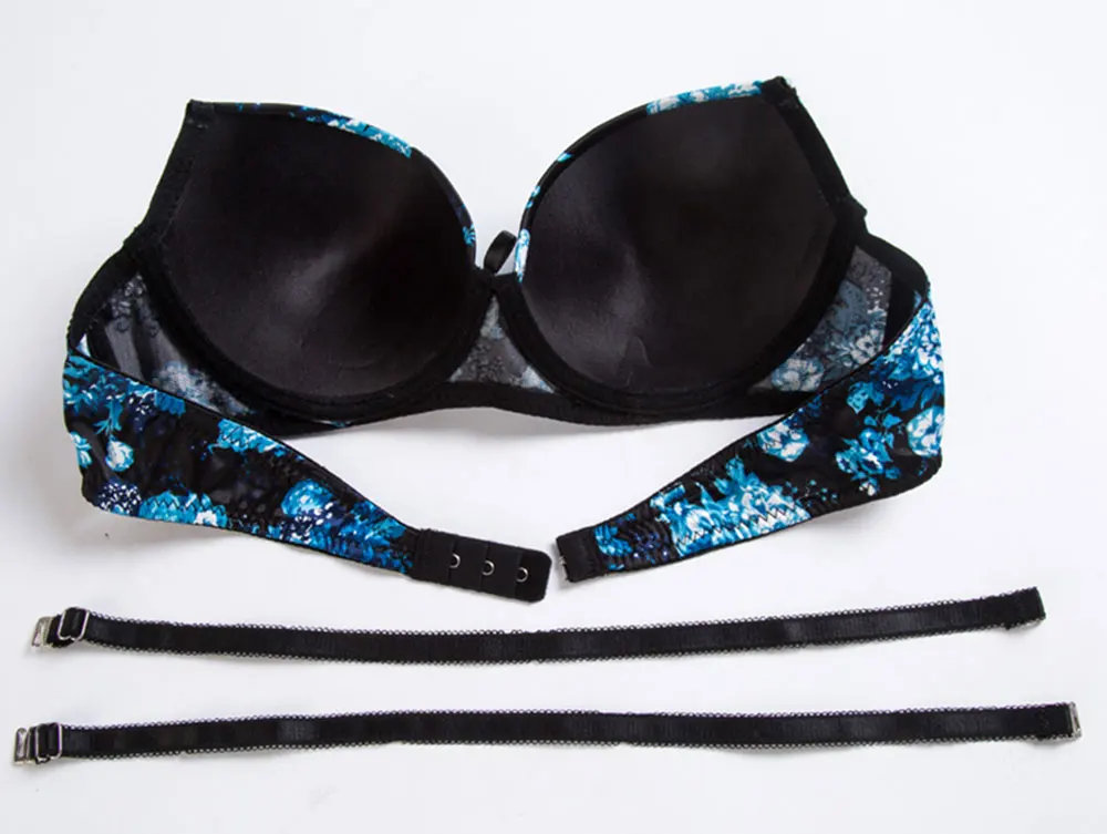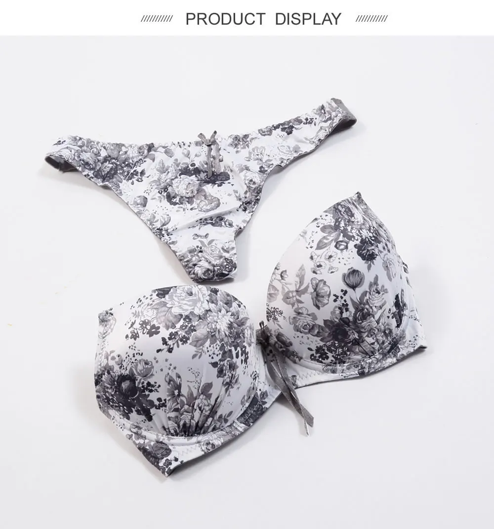 Lingerie Set Sexy Print Bra and Panty Thong Convertible Straps Push Up Underwear Women Deep V Black White Intimates Lady Female