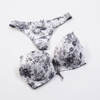 Lingerie Set Sexy Print Bra and Panty Thong Convertible Straps Push Up Underwear Women Deep V Black White Intimates Lady Female