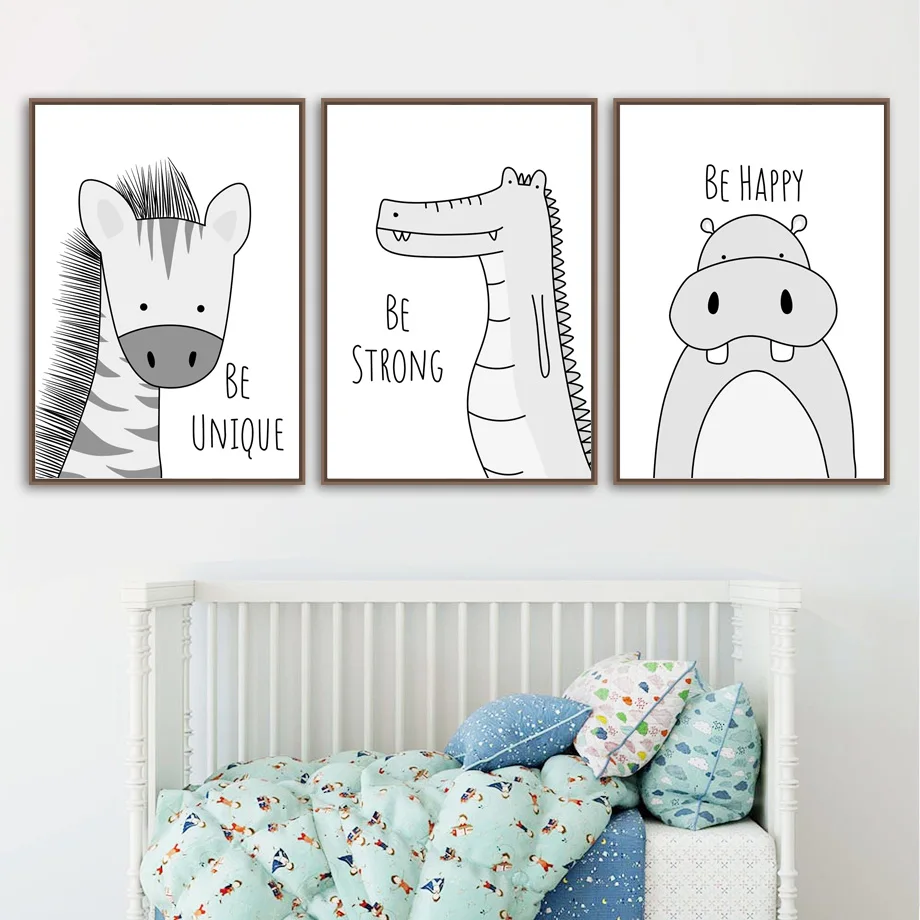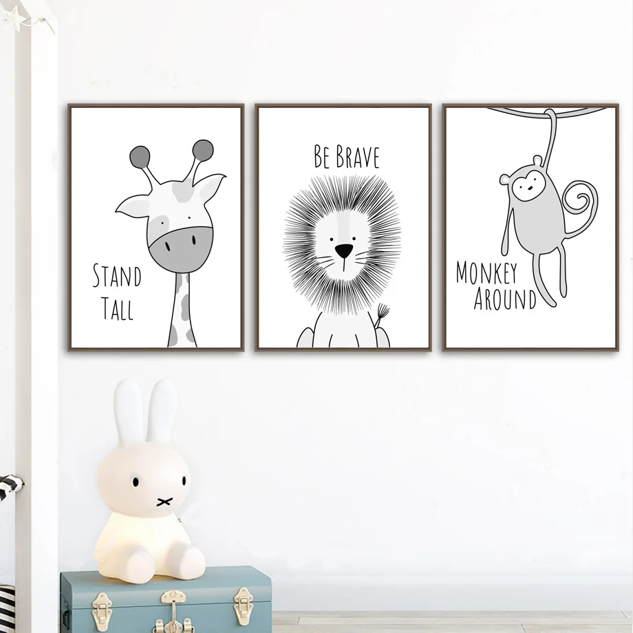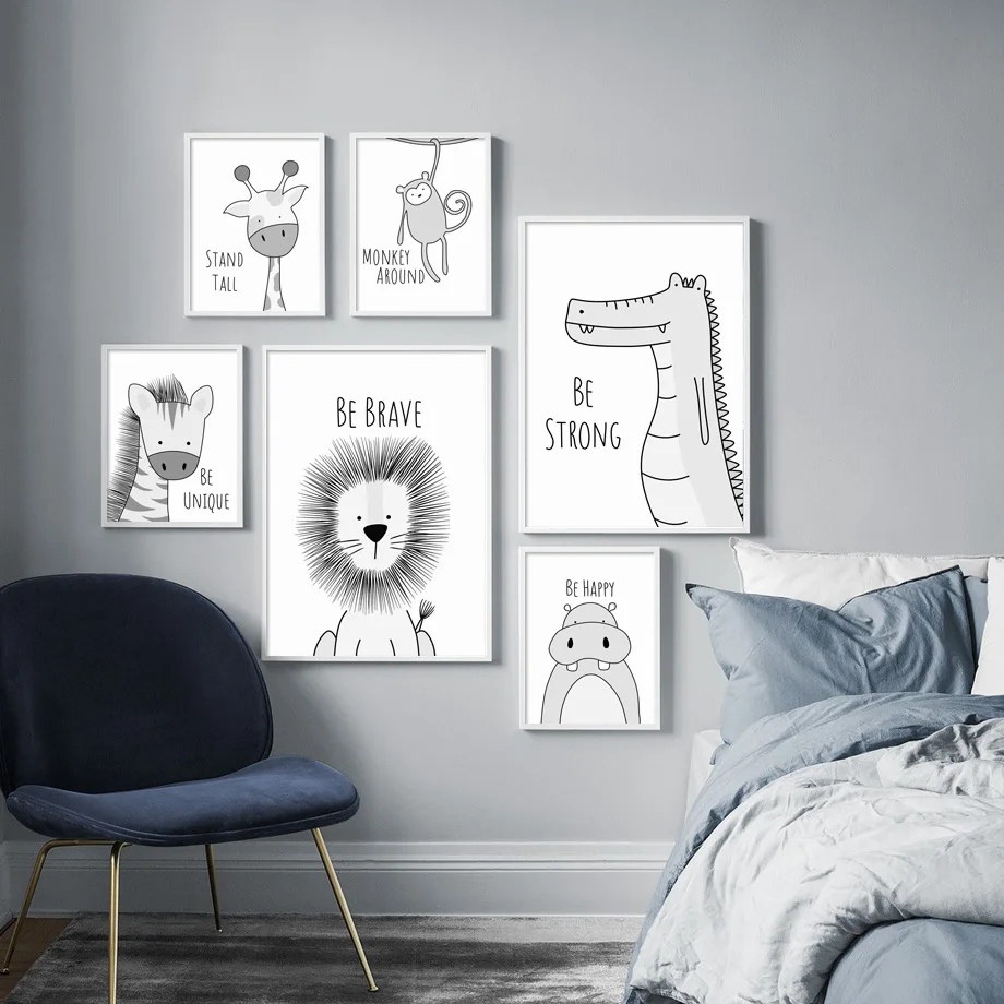 Lion Giraffe Zebra Monkey Hippo Wall Art Canvas Painting Nordic Posters And Prints Nursery Wall Pictures Baby Kids Room Decor