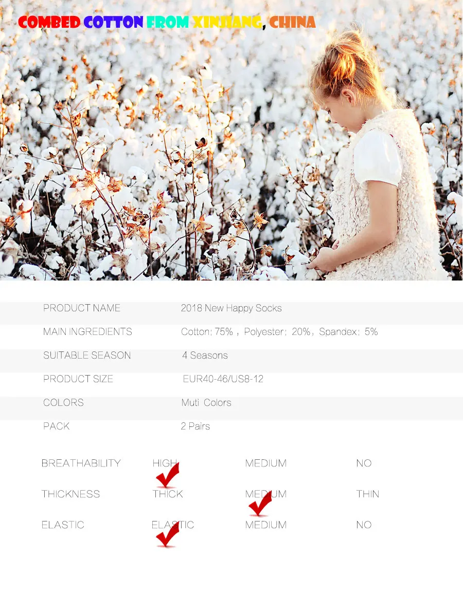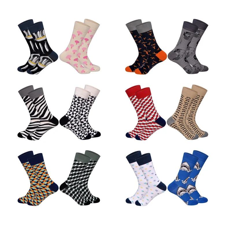 Lionzone 2Pairs/Lot Men Happy Socks Funny Brand Designer Colorful Streetwear Combed Cotton Dress Crew Socks Soft