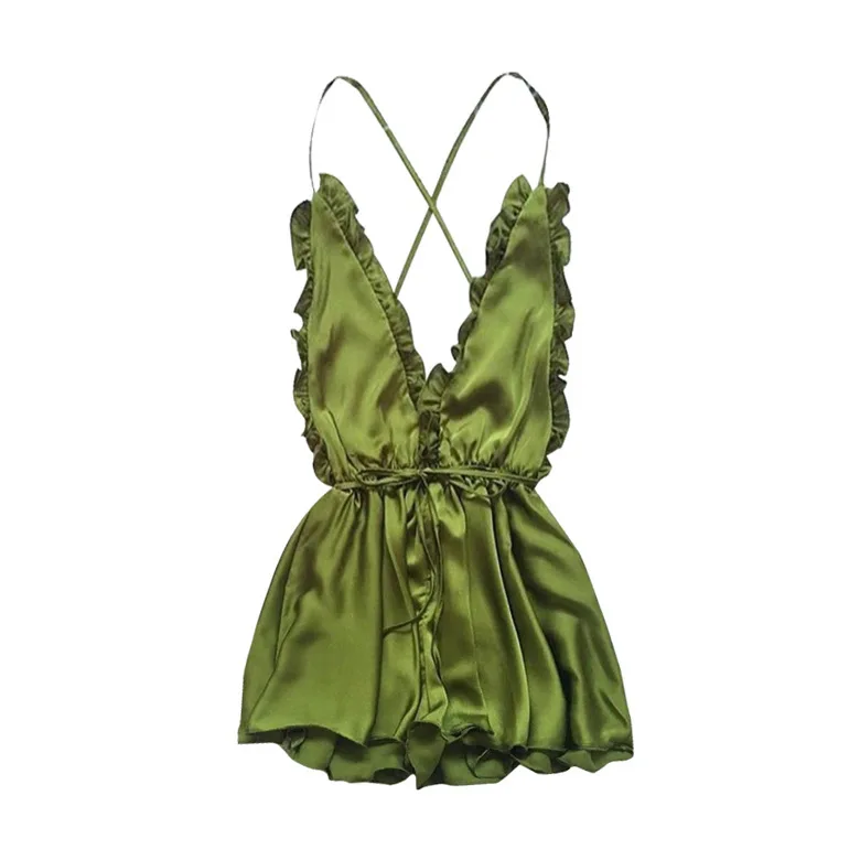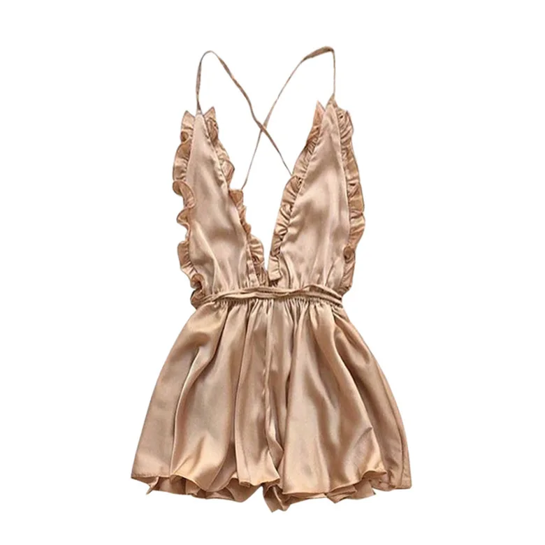 Lisacmvpnel Spaghetti Strap Blackless Women Nightdress Deep V Fashion Sexy Female Sleepwear