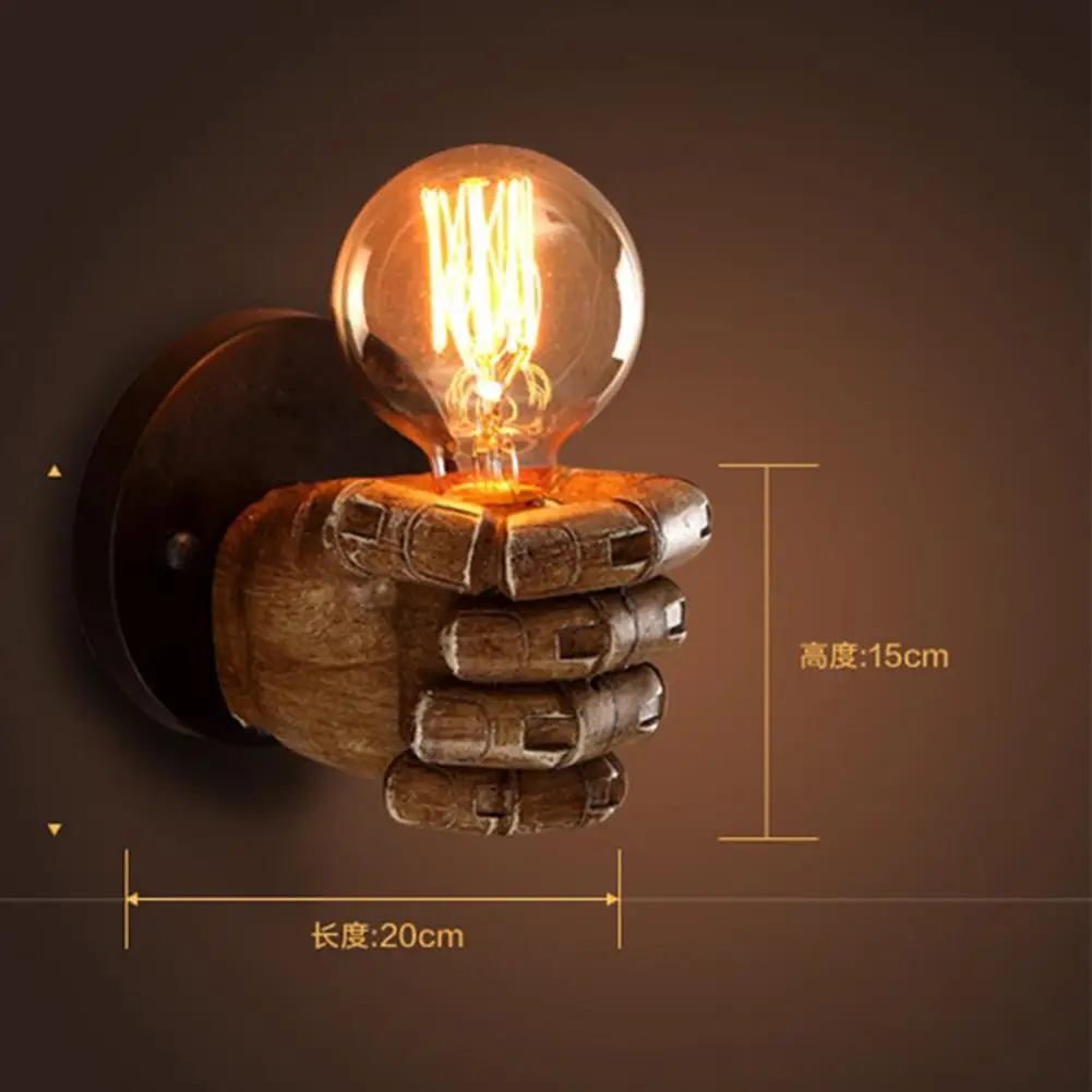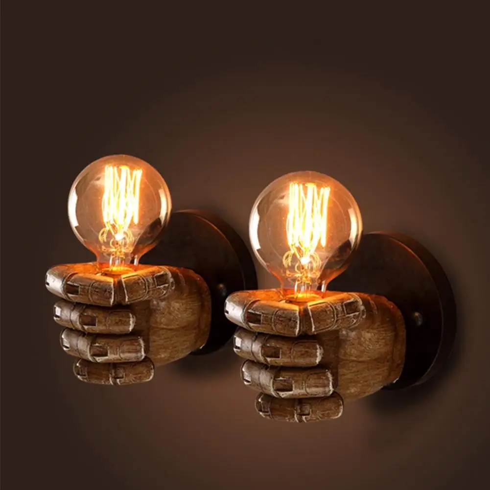 Litake Retro Creative Fist Shape Wall Light E27 Lamp Holder Industrial Style Wall Lamp Restaurant Living Room Cafe Bar Decor