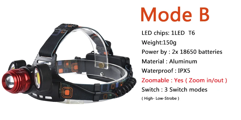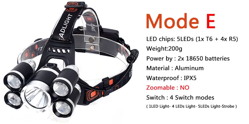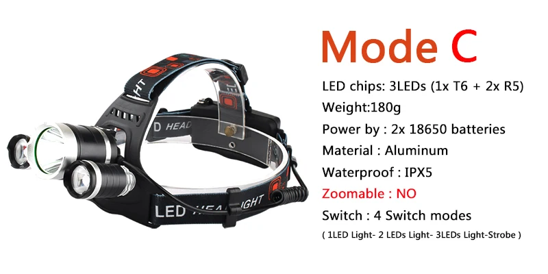 - Energy saving :Test 2 pcs 18650 batteries 2600mAh Keep 1 led headlamp working for more than 20 hours ; 3 led 15 hours ; 5 led 10 hours