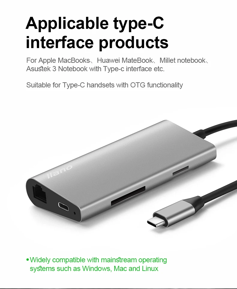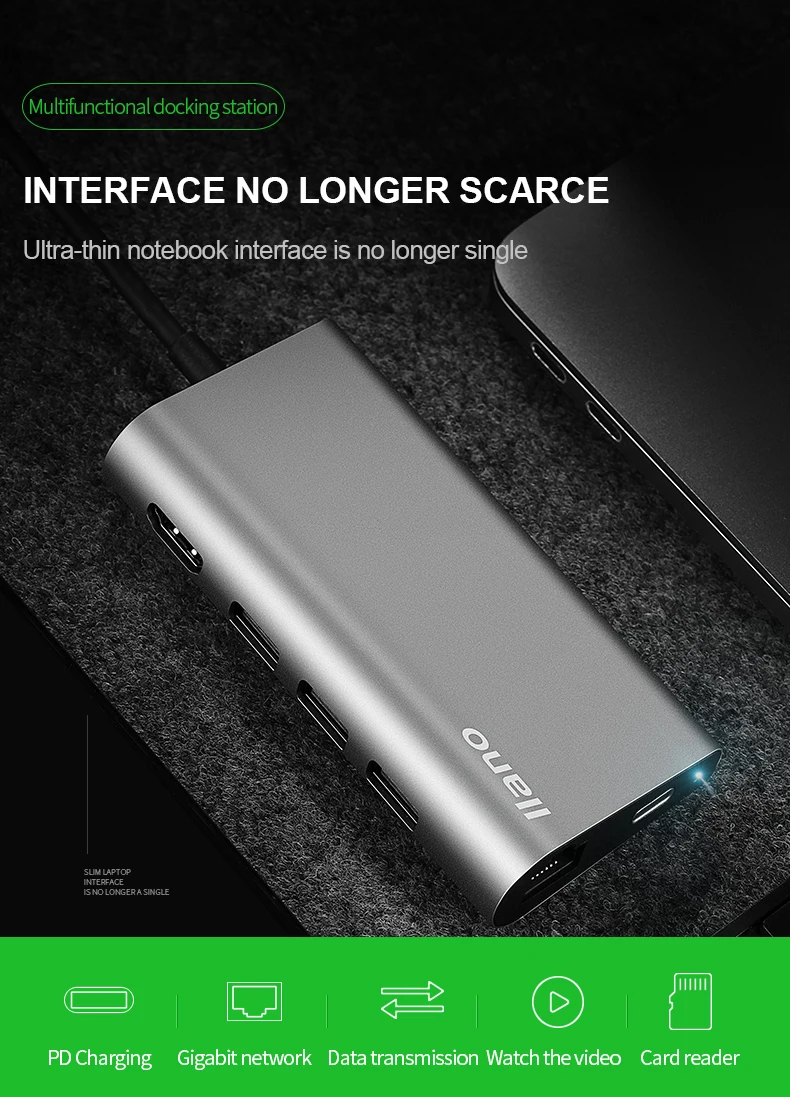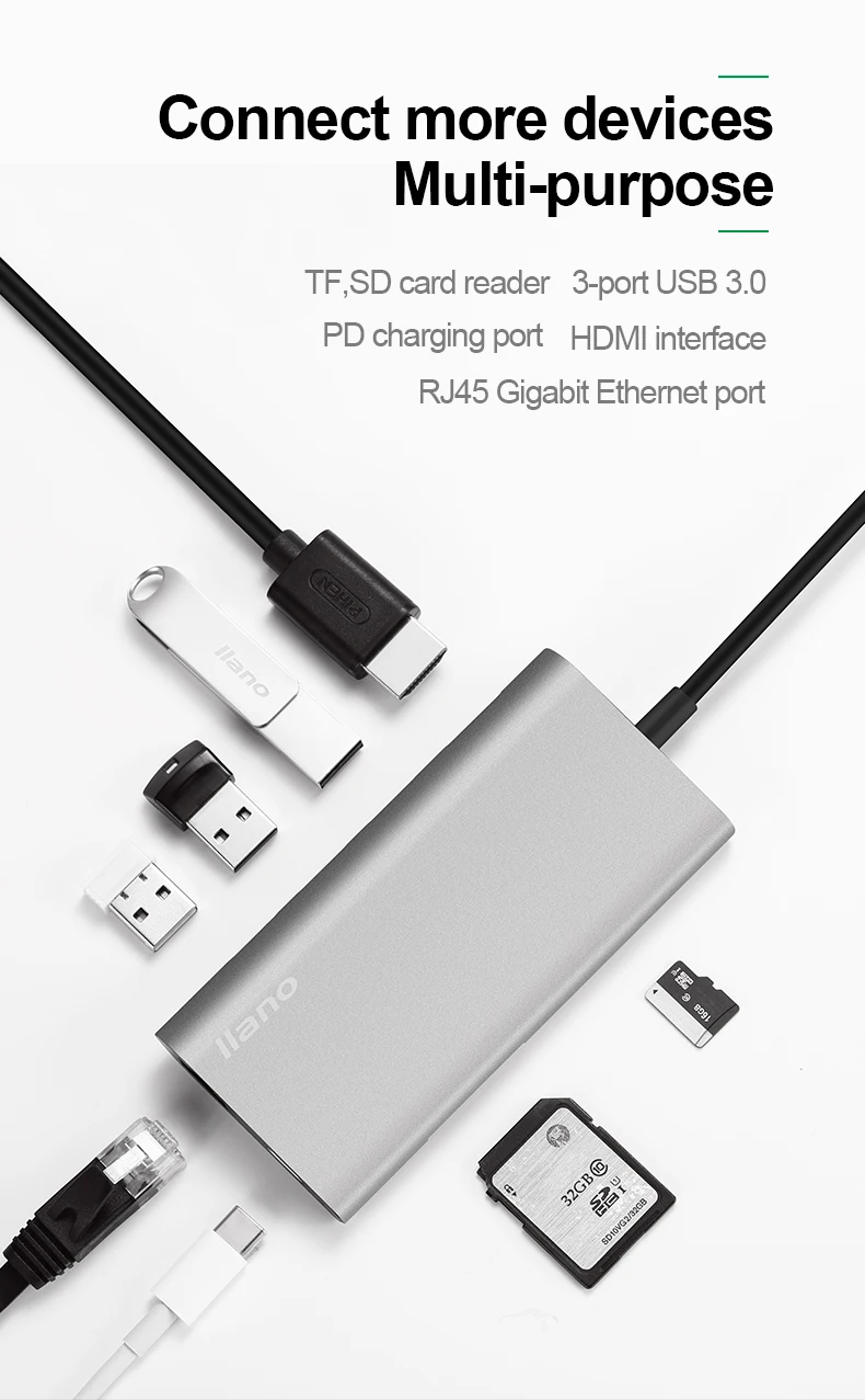 llano USB docking station All-in-One USB-C to HDMI Card Reader RJ45 PD Adapter for MacBook Samsung Galaxy S9 /S8 / S8+Type C HUB
