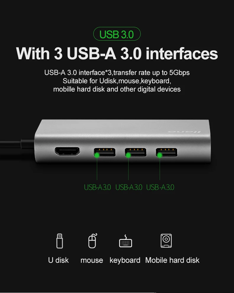 llano USB HUB USB C to HDMI RJ45 PD Thunderbolt 3 Adapter for MacBook Samsung Galaxy S9/S8 Huawei P20 Pro Type-C USB 3.0 HUB