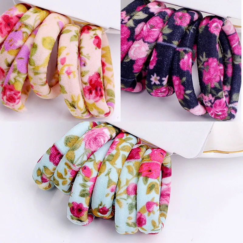 LNRRABC 6PCS/Set Women 9 Colors Korean Style Hair Ropes Floral Print High Elastic Fashion Elastic Hair Bands