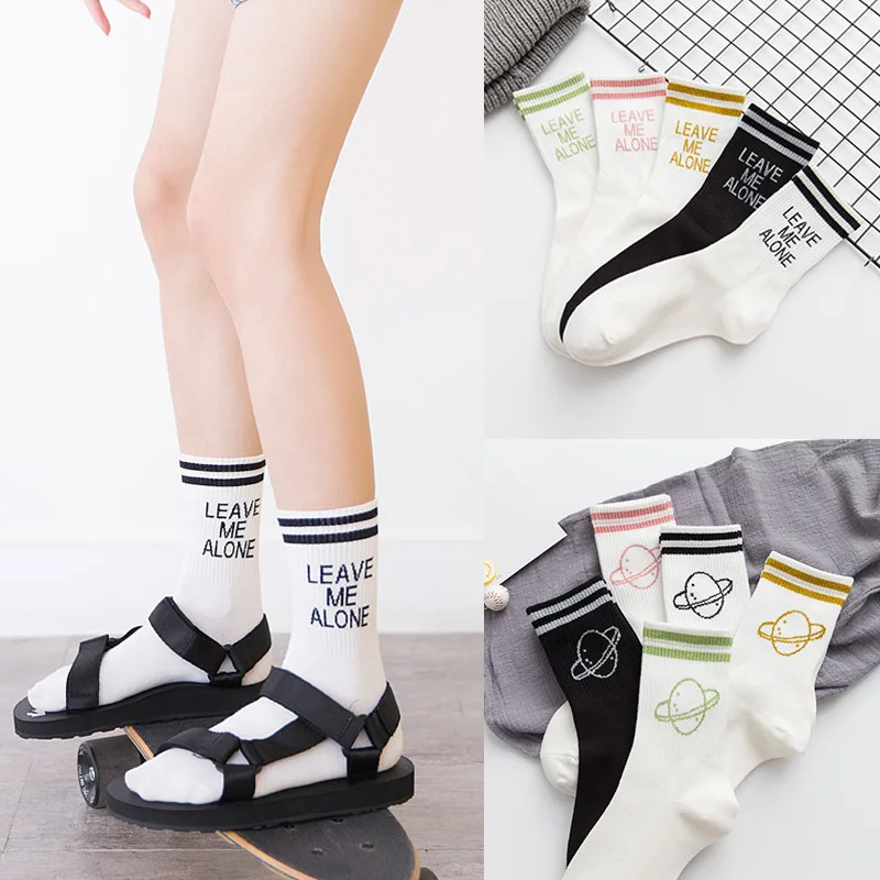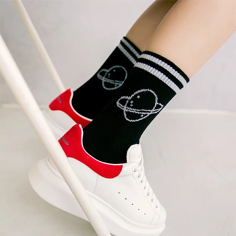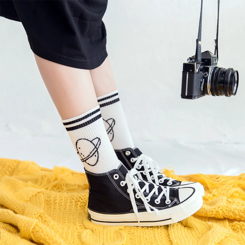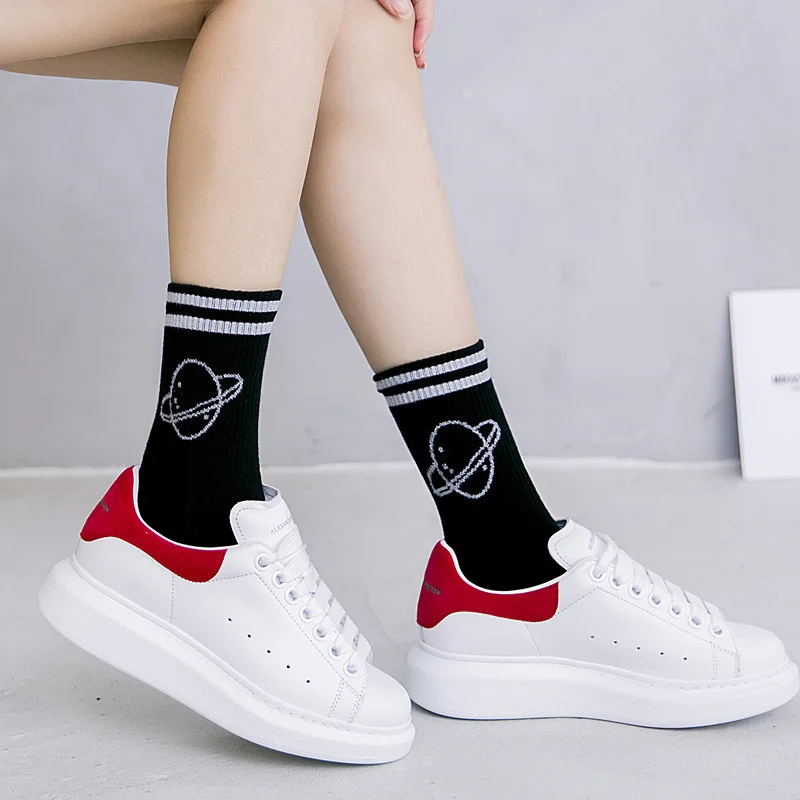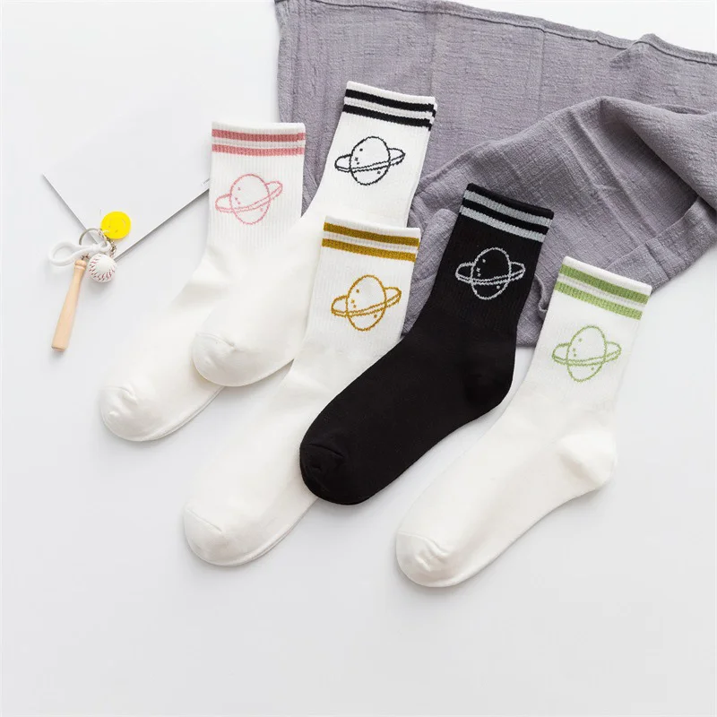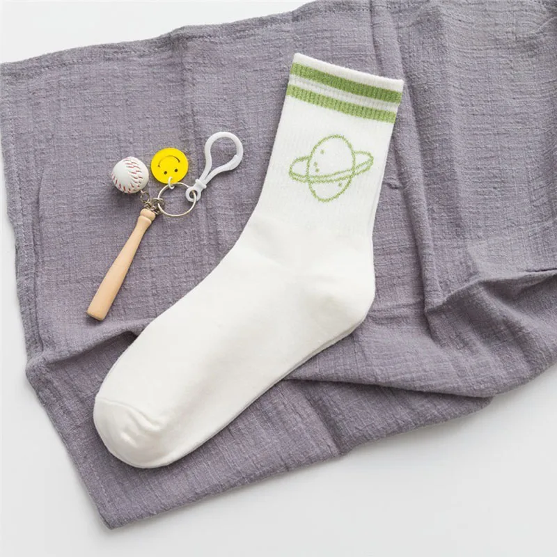 LNRRABC Breathable Summer Women Funny Socks Harajuku Spring Cotton Cute Universe Striped Cartoon Socks Clothing Accessories