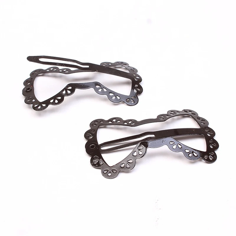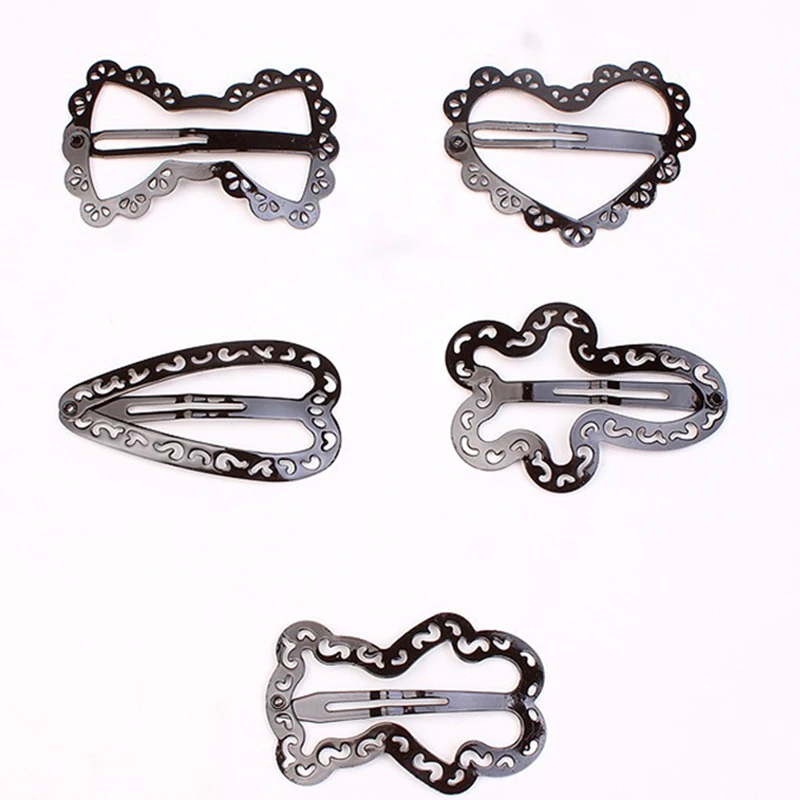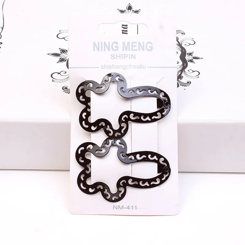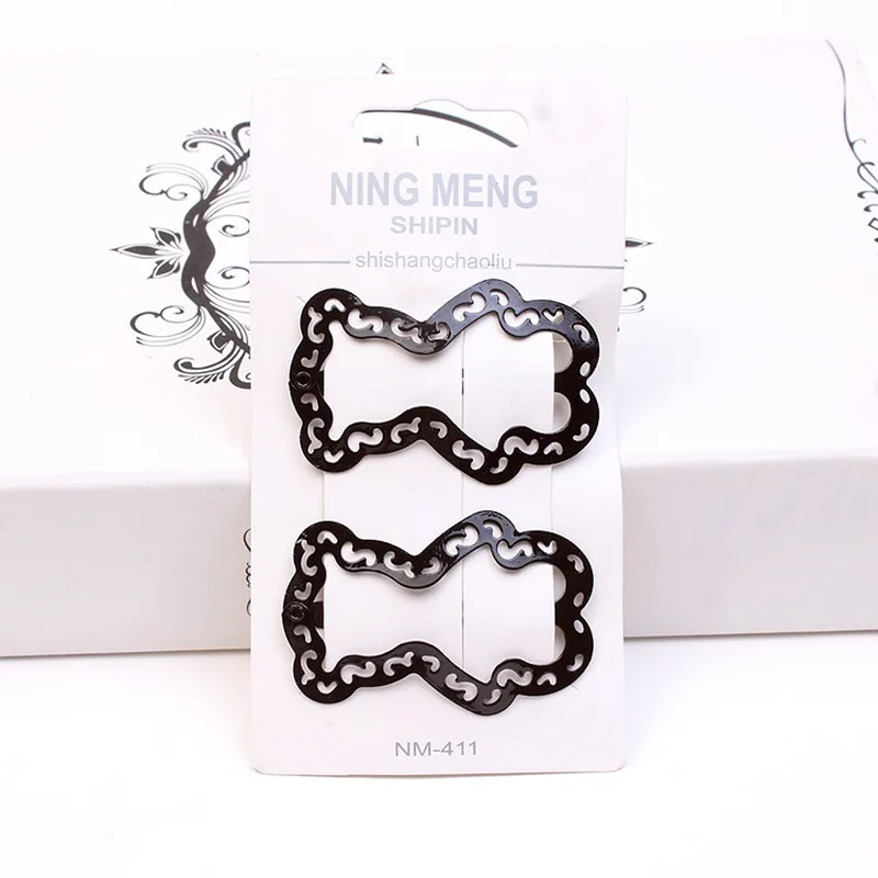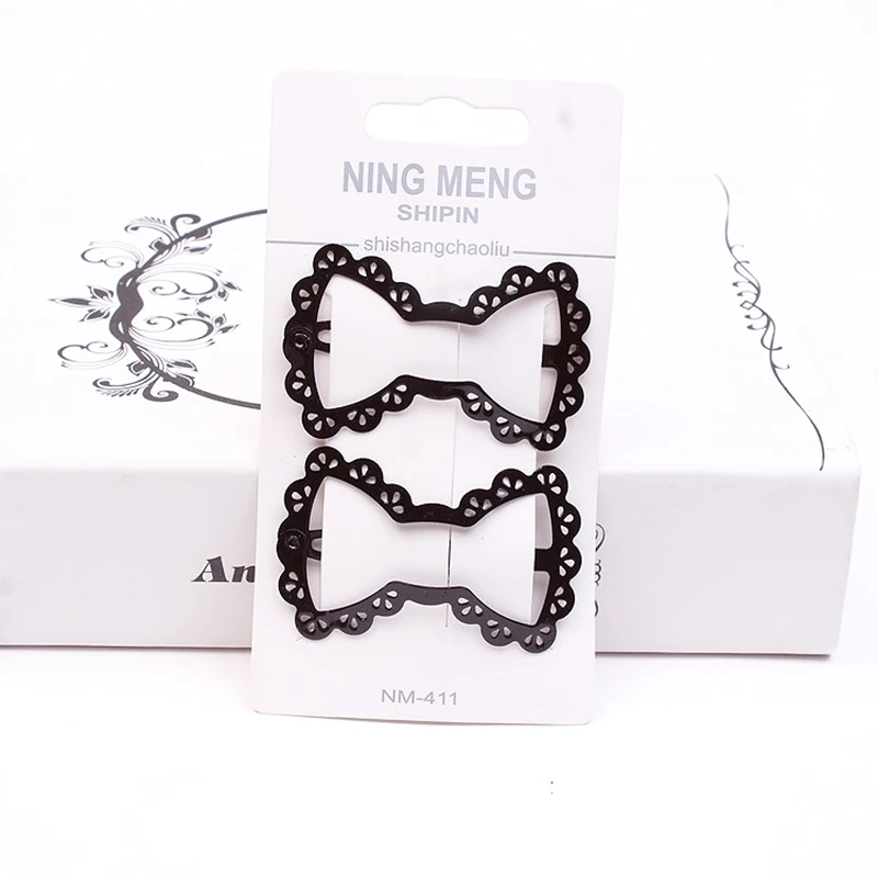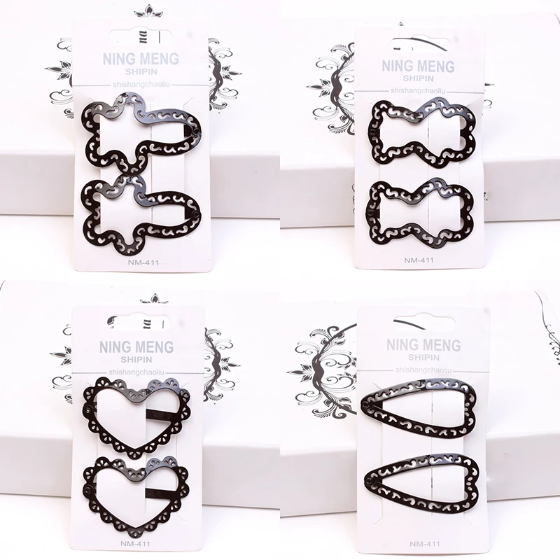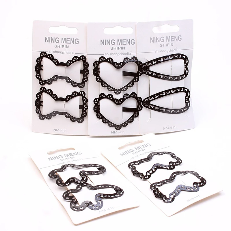 Korean 2018 New Arrival Allergy Free Water Drop Free Shipping 2PC/Set Hair Clip Heart Bow-tie Hollow Out BB Clip Bear Black