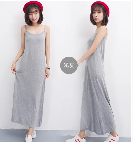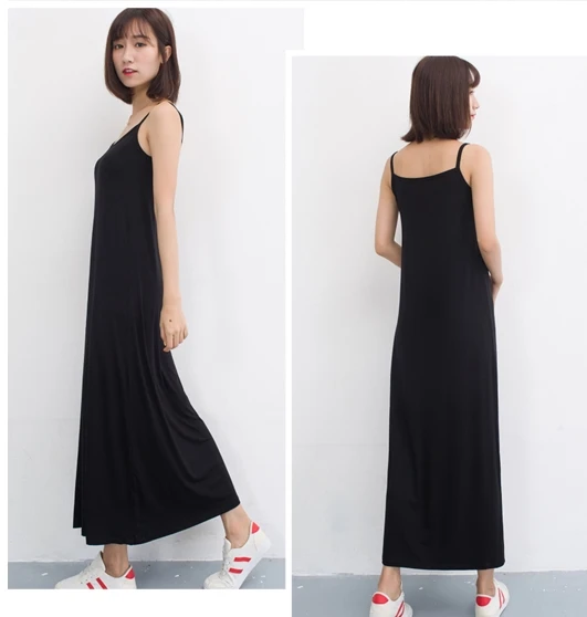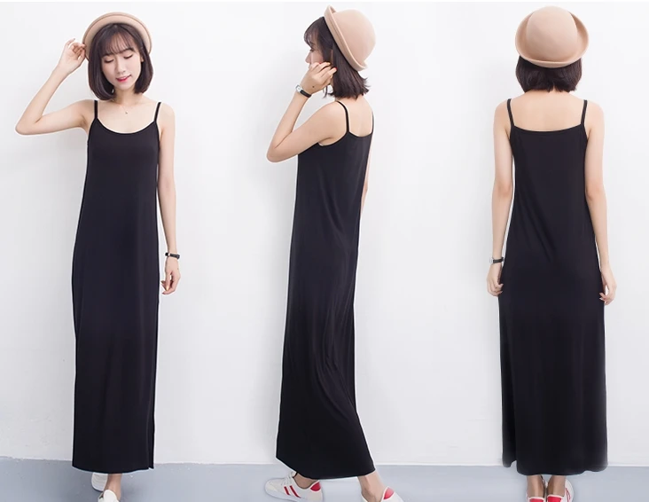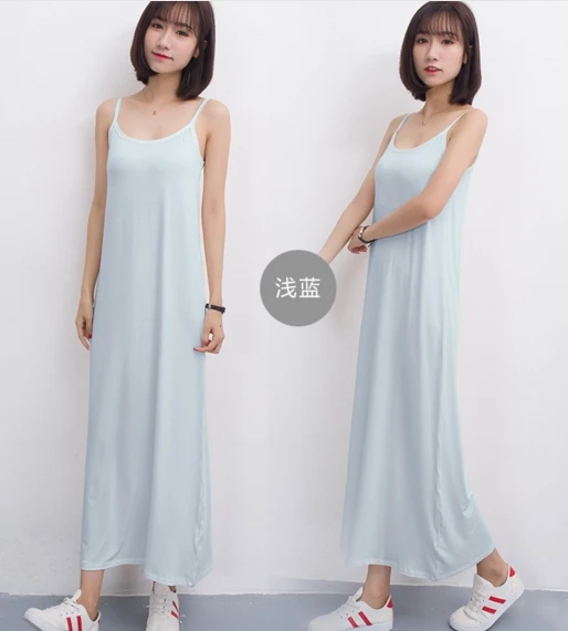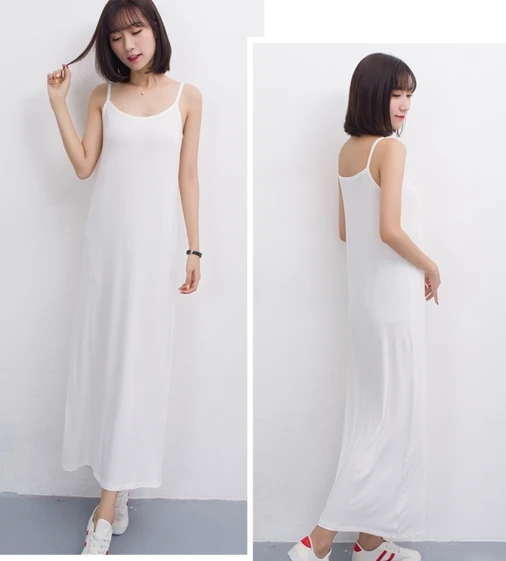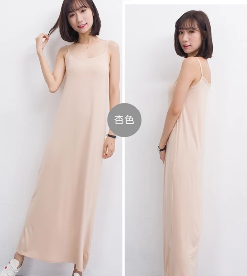 Long Full Slips Spaghetti x-Long Slip Modal Underdress Pure Color Comfortable Clothing for Women