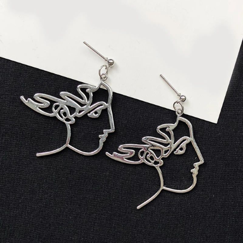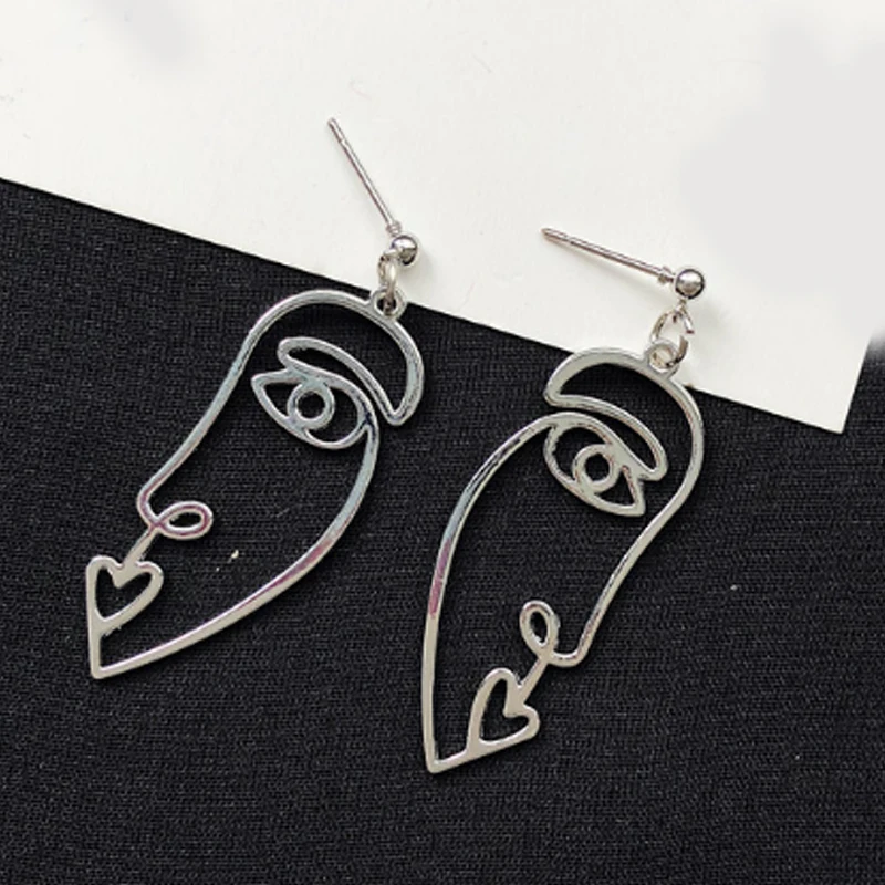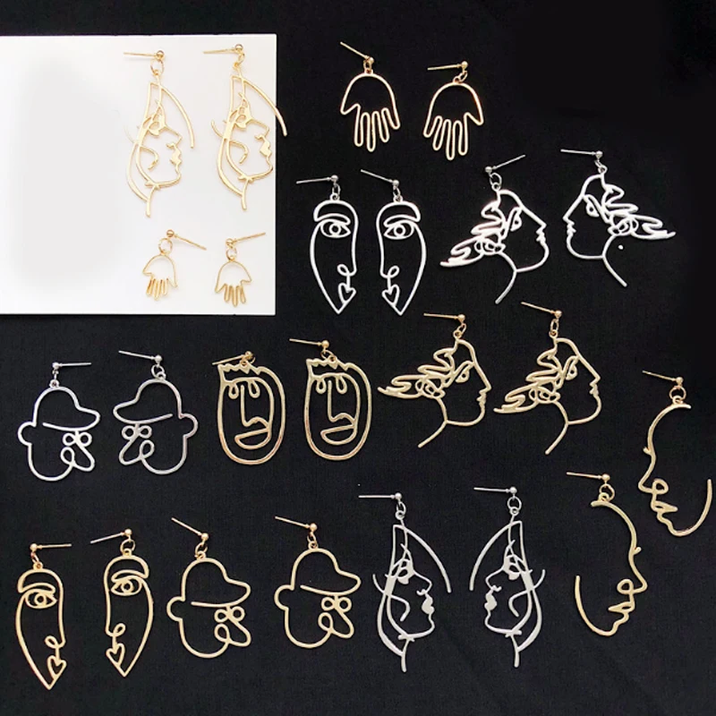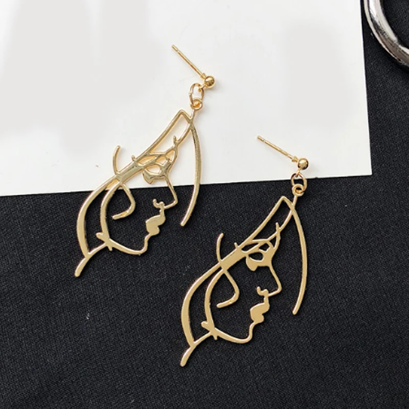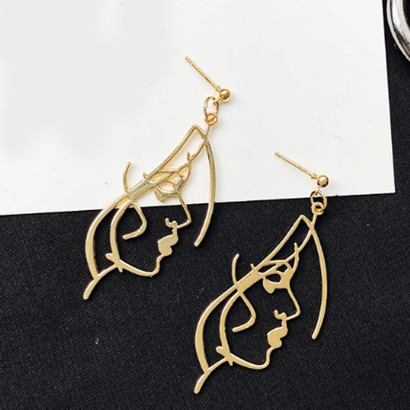 Long New Retro Metal Alloy Fashion earring Girls New Face Multiple Choice Earrings Hollow Out Abstract Dangle Earrings Face