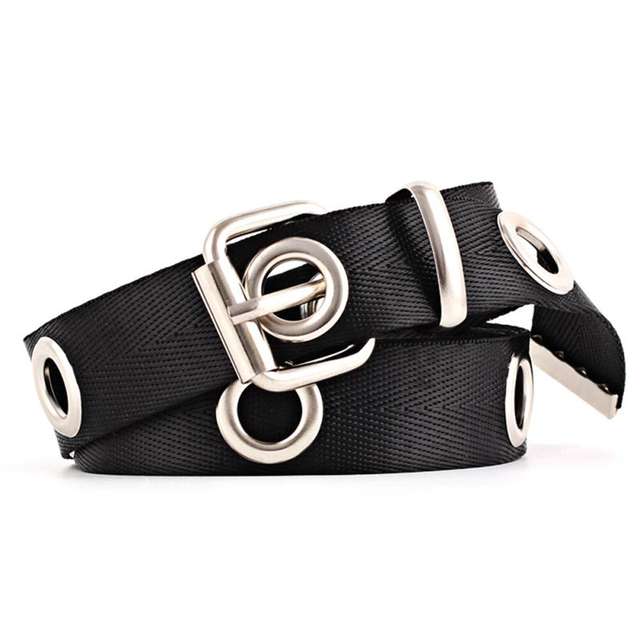Long Personality Design HOT casual ring black metal belt female students jean canvas waist belts tide silver pin buckle Men lady