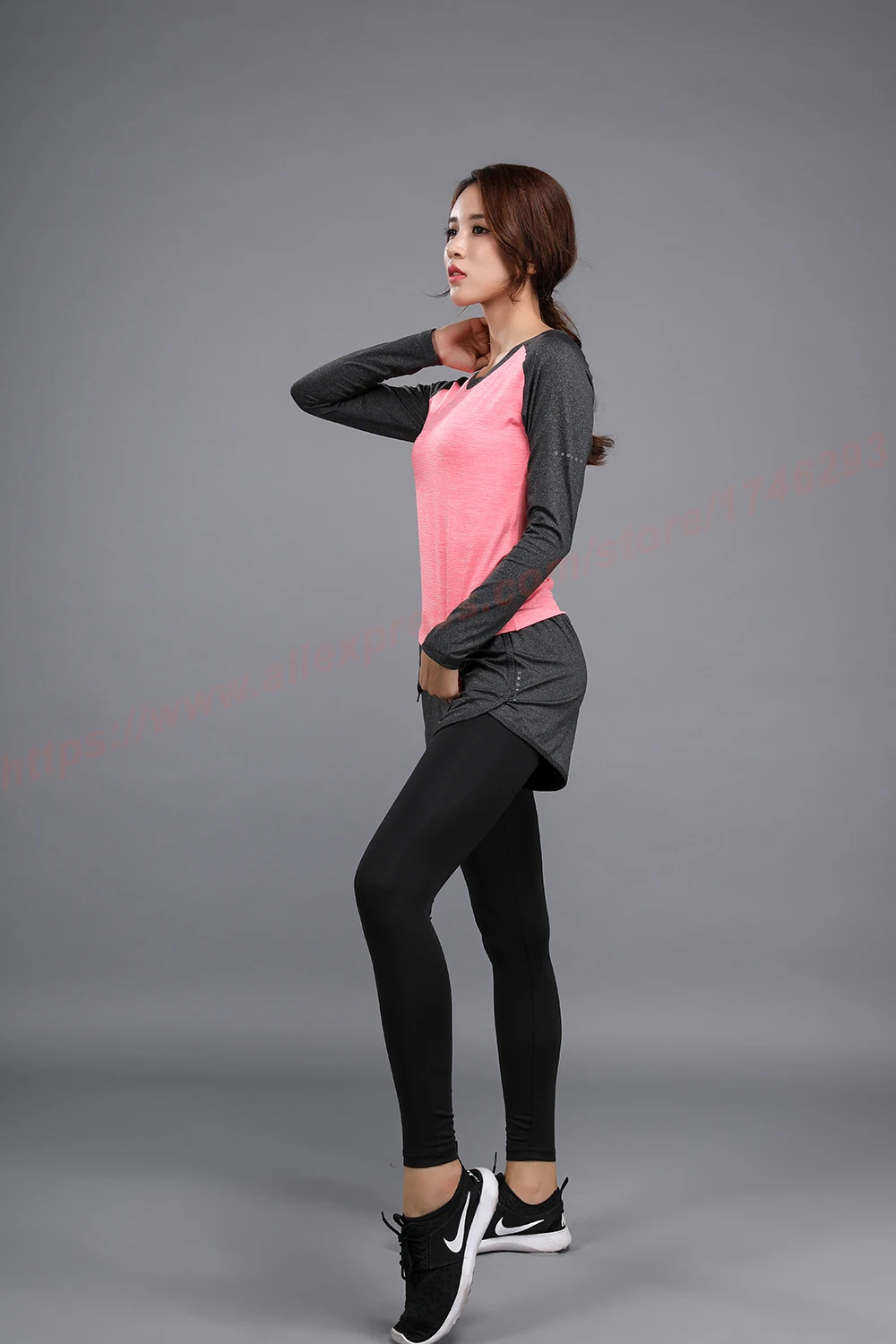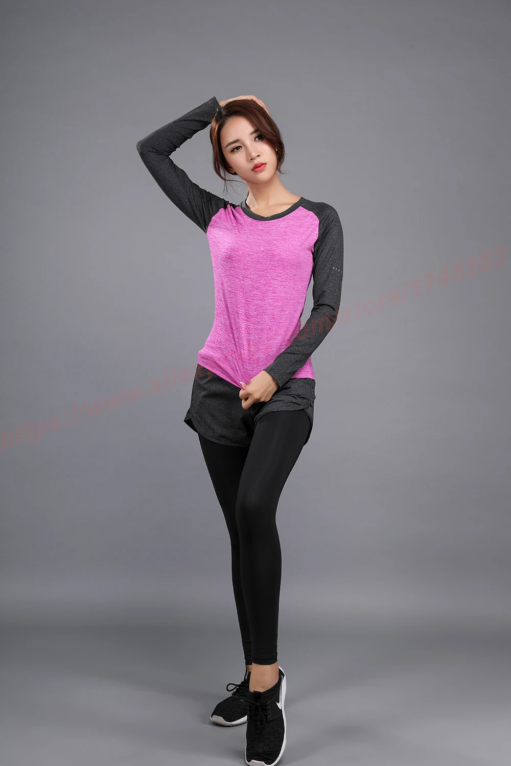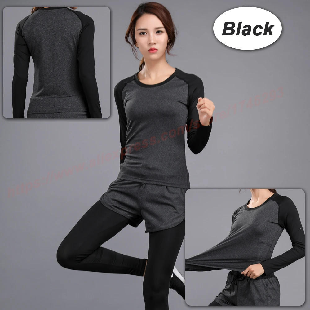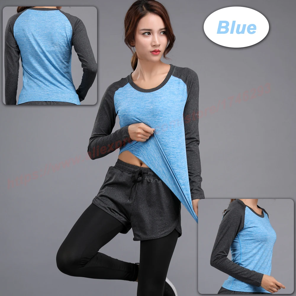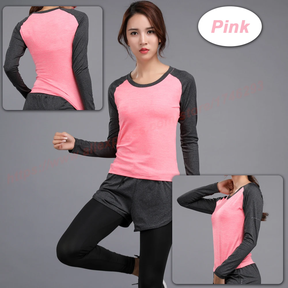 Long Sleeve Yoga Fitness Women Quick Dry T-shirt Compression Tight Sport Shirts Gym Training Women Round Neck Running Tee