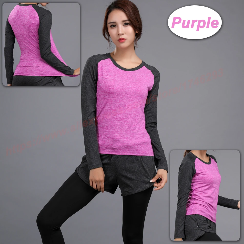 Long Sleeve Yoga Fitness Women Quick Dry T-shirt Compression Tight Sport Shirts Gym Training Women Round Neck Running Tee