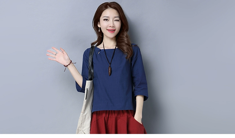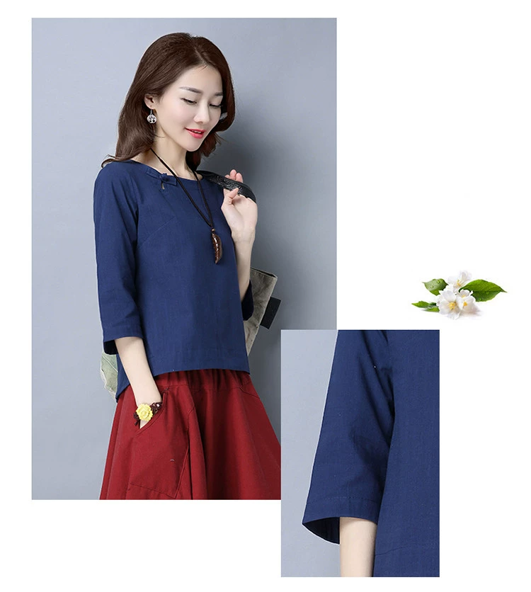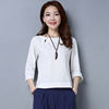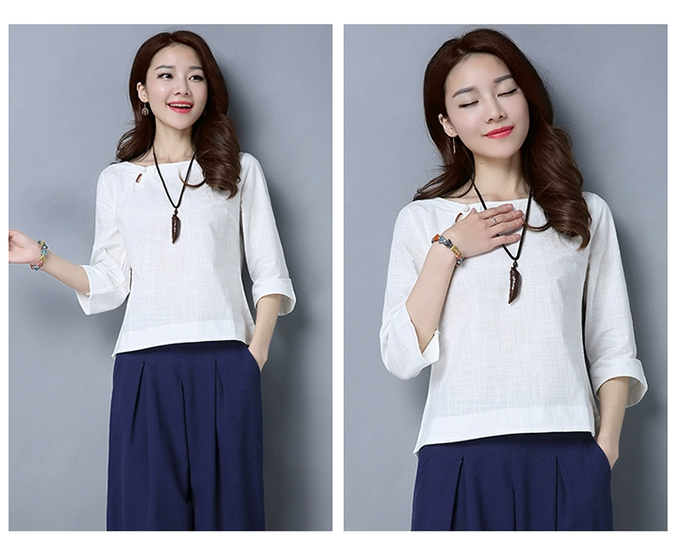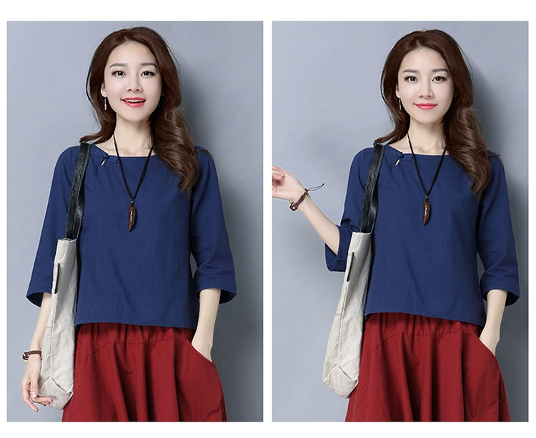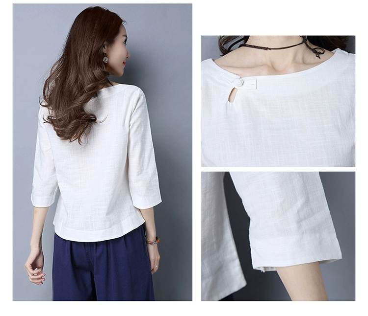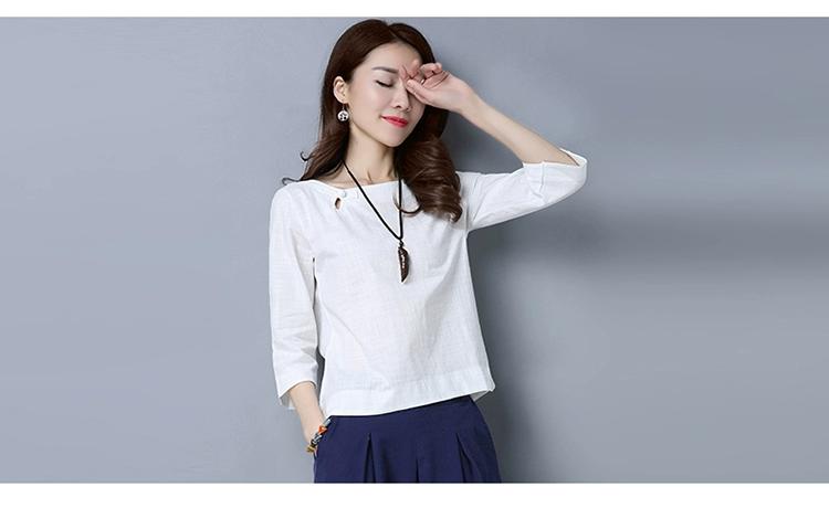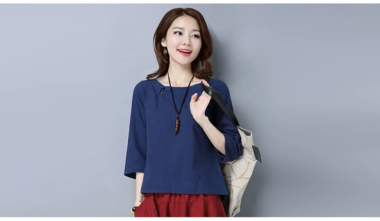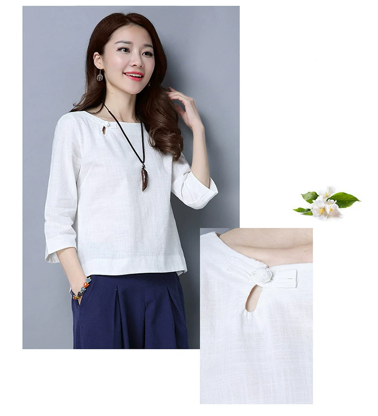 Loose Cotton And Linen Shirts New 2017 Solid Color Vintage Chinese Style Button Base Shirt Women