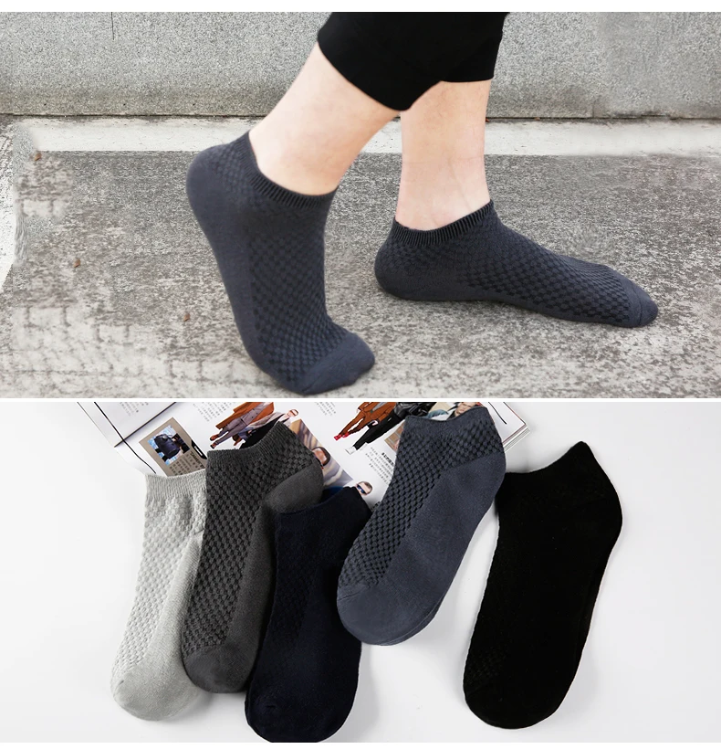 Lot Fashion Casua business Men’s Bamboo Fiber & Cotton Socks Invisible Ankle Socks Men Breathable Thin Boat Socks 1pair 5pairs