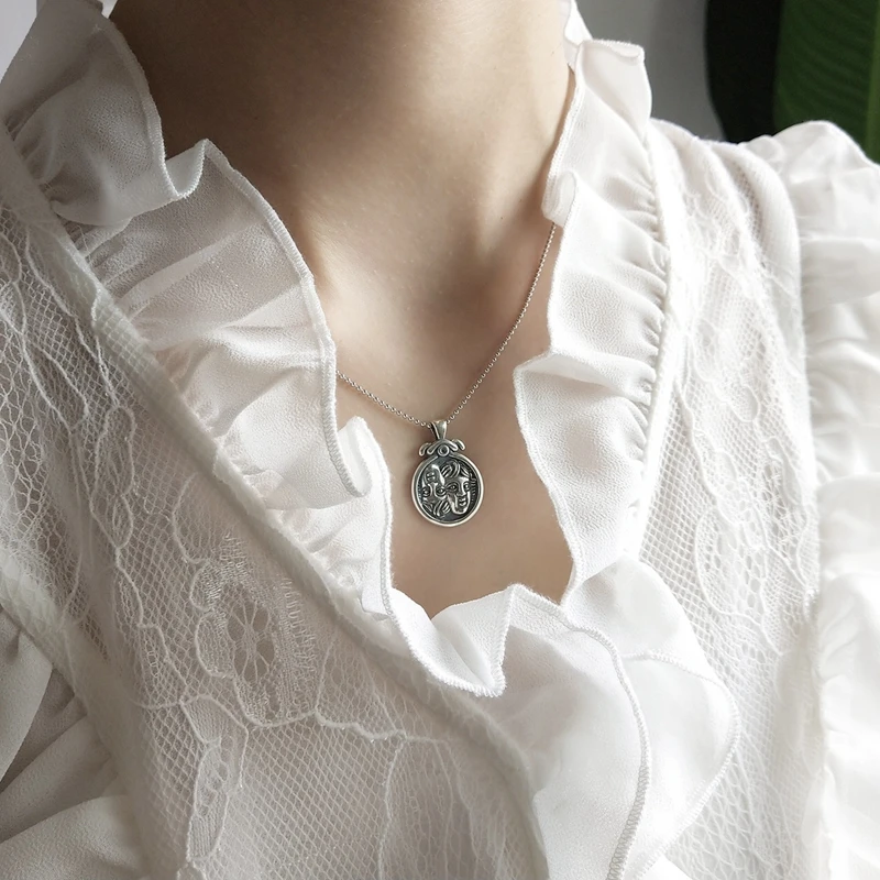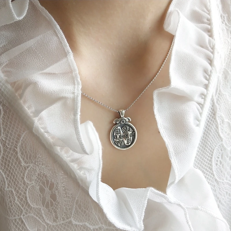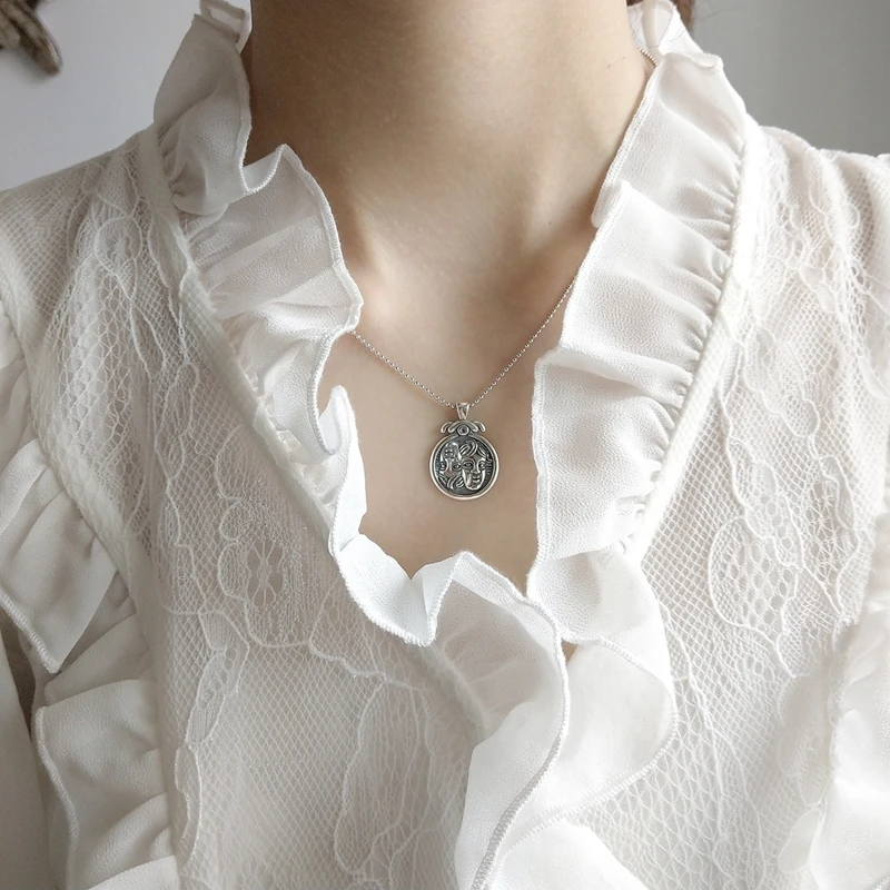 LouLeur 925 sterling silver double baby avatar figure necklace silver baby vintage long chain necklace for women fine jewelry
