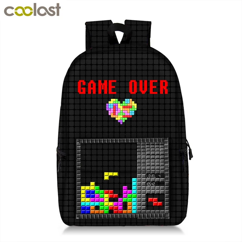 Love And Tree Tetris Game Console Printed Backpack Girls Boys School Bag For Laptop Travel Backpack Mochila Feminina Knaspack
