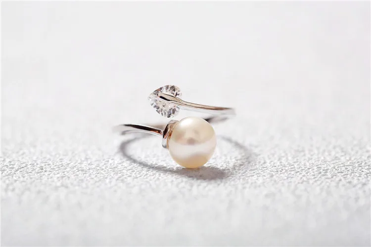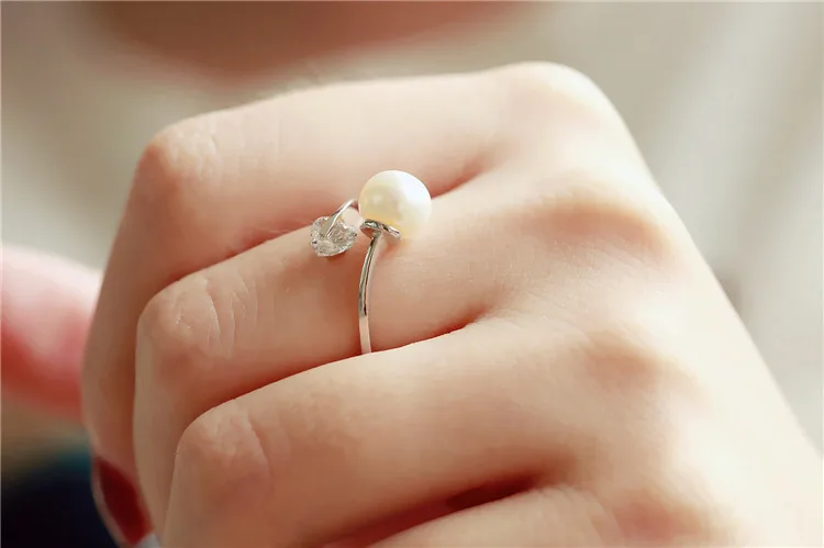 Love Heart Zircon Simulated Pearl Open Rings For Women Bijoux Fashion Adjustable Jewelry Accessories