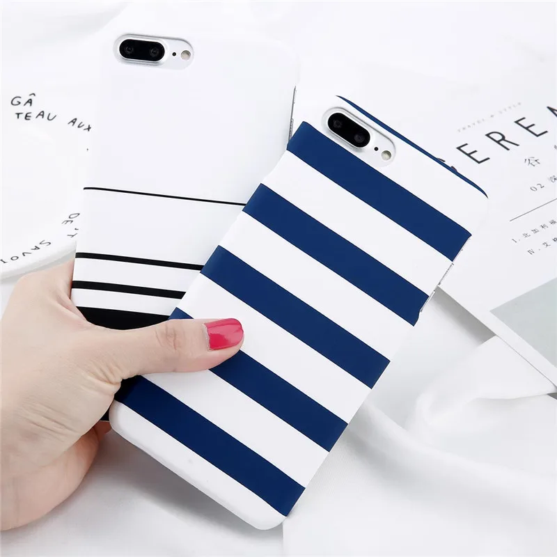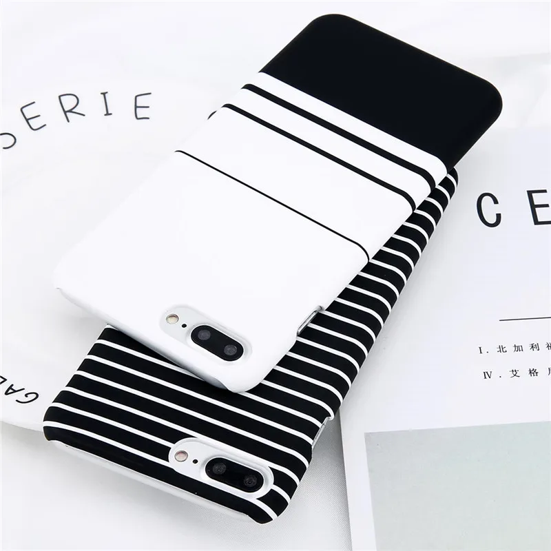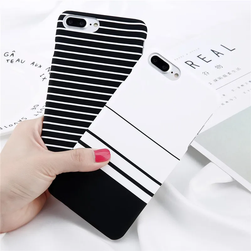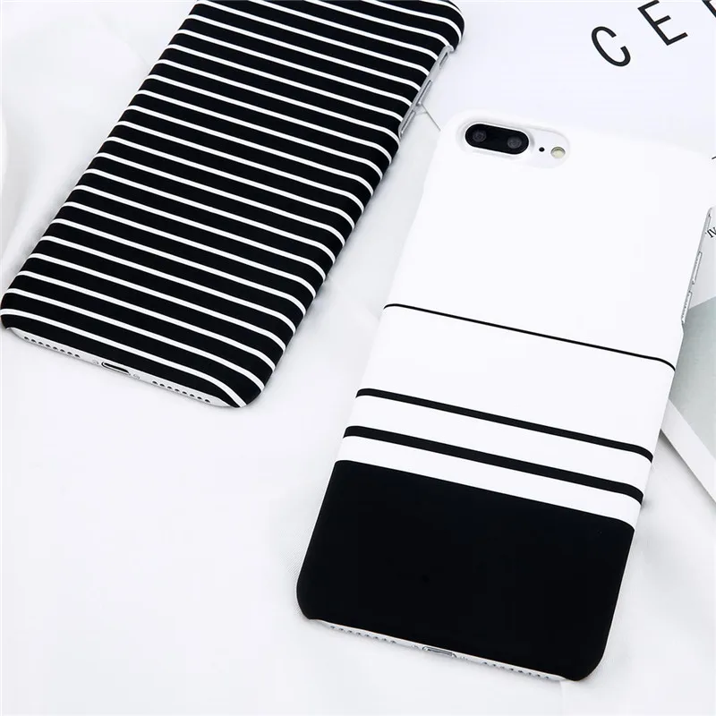 Lovebay Phone Case For iPhone X XR XS Max 8 7 6 6s Plus 5 5s Fashion Black and white Stripes Hard Plastic Protect Cover Cases For iPhone 8