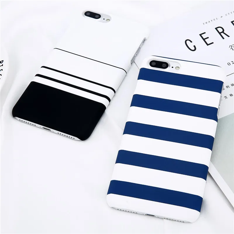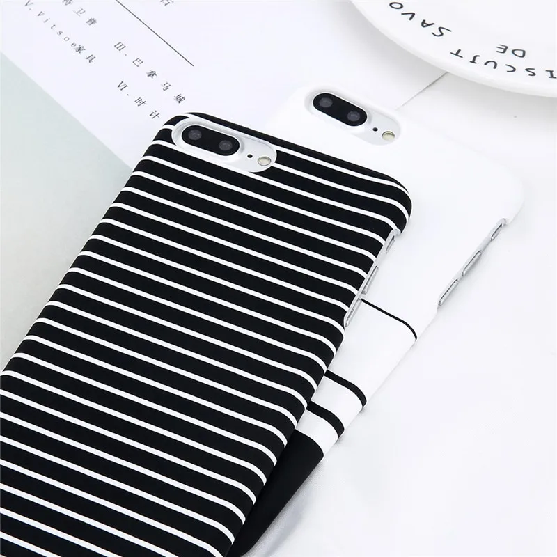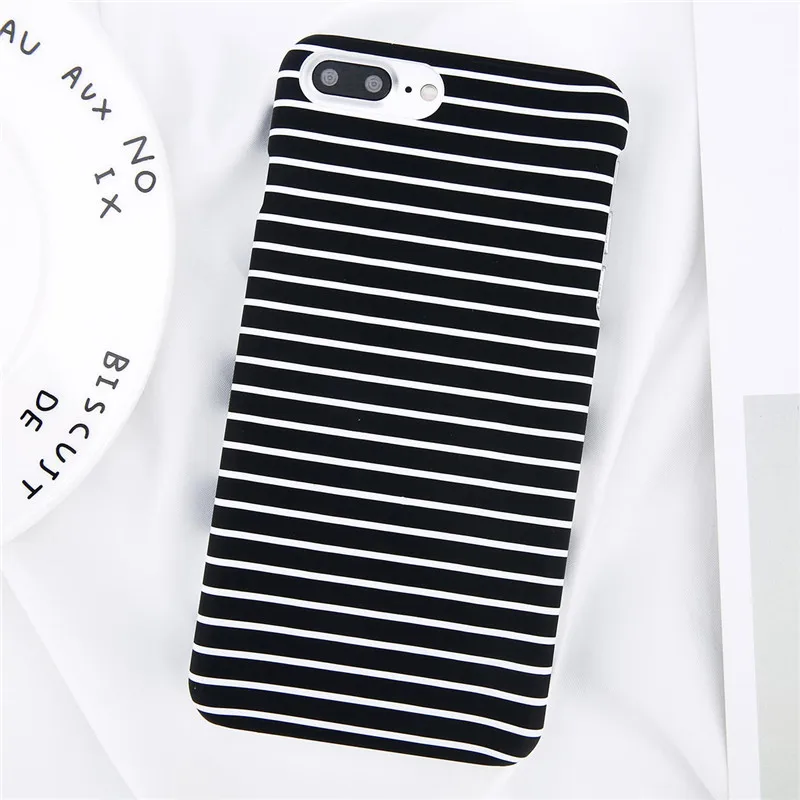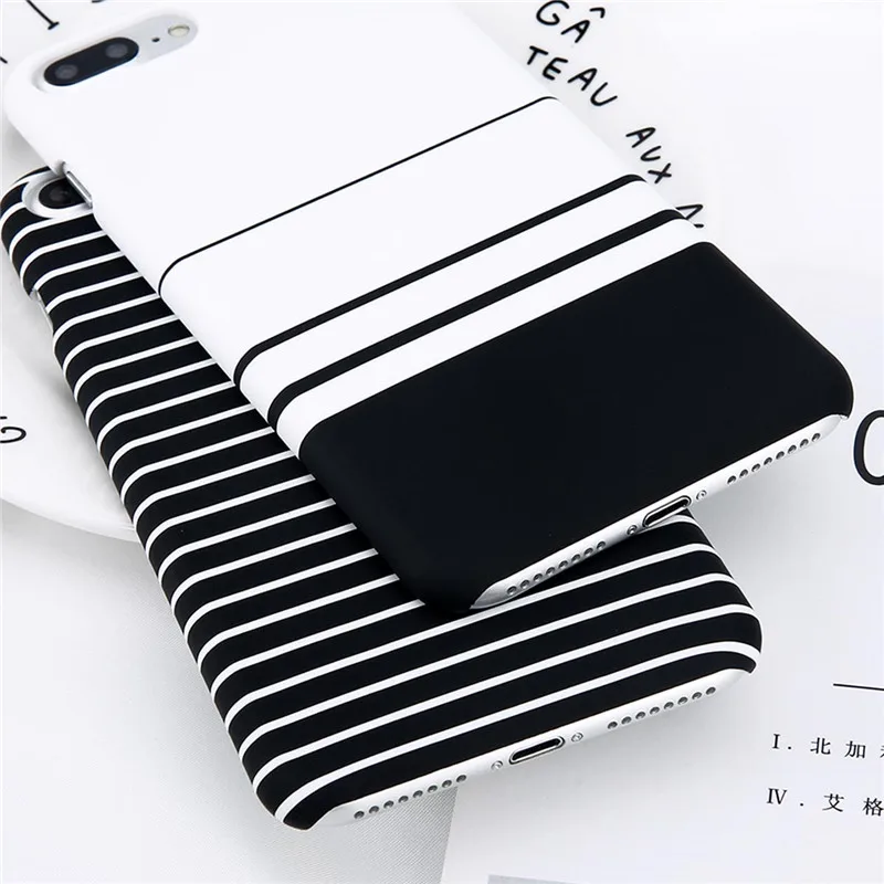 Lovebay Phone Case For iPhone X XR XS Max 8 7 6 6s Plus 5 5s Fashion Black and white Stripes Hard Plastic Protect Cover Cases For iPhone 8